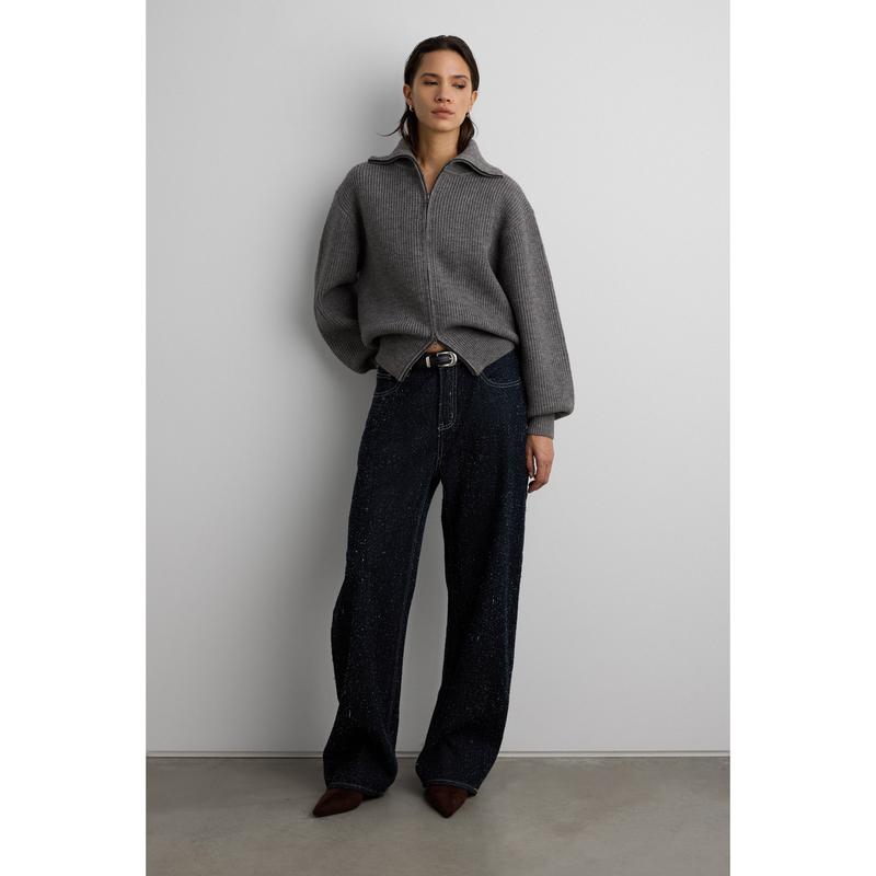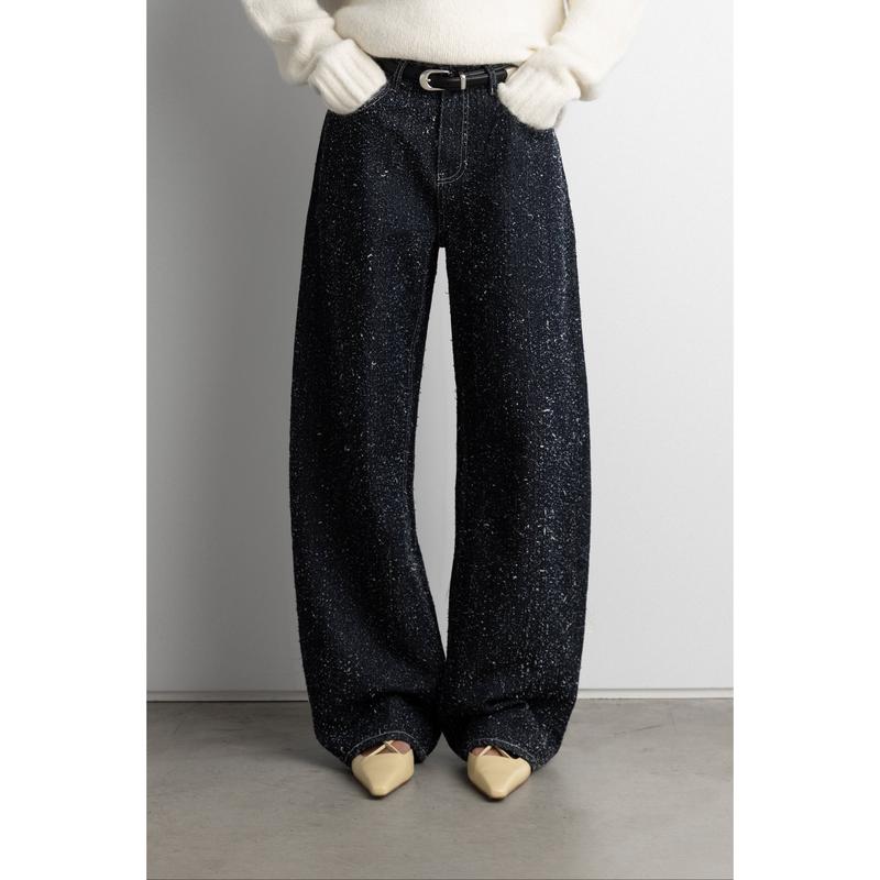 These barrel fit jeans feature a boucle texture. Wear these statement jeans with a classic top. Each pair vary in texture, making them one of a kind. DETAILS Wide leg. Five pockets. Boucle texture. Belt loops. FIT & SIZING