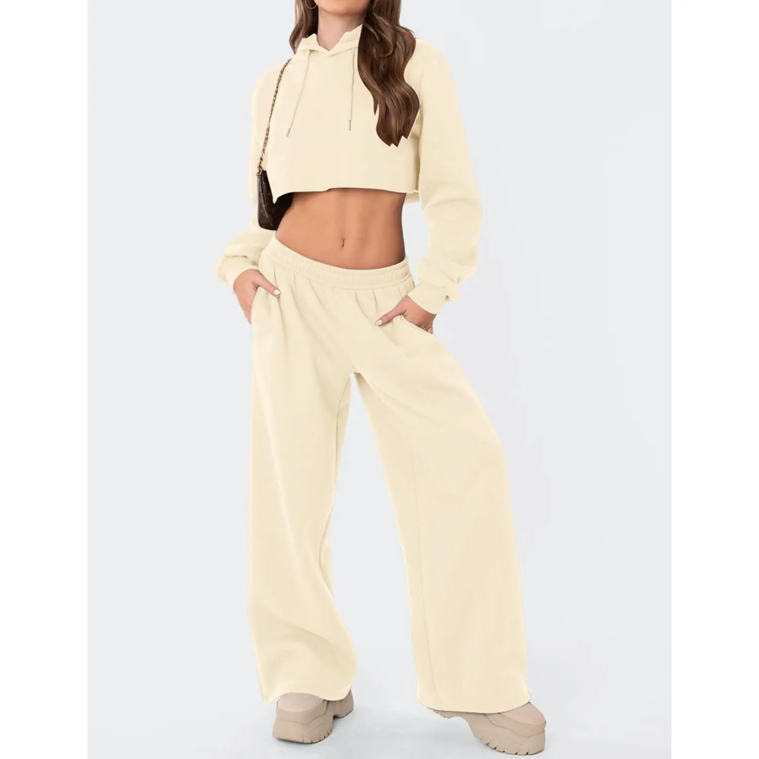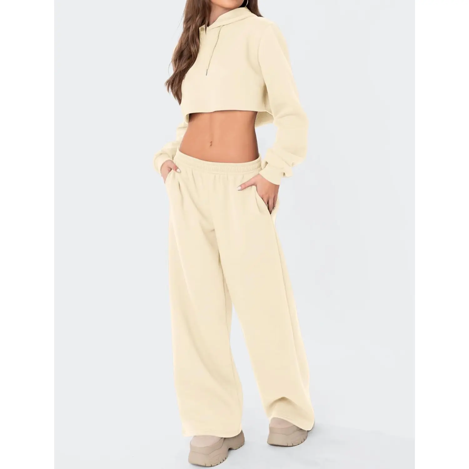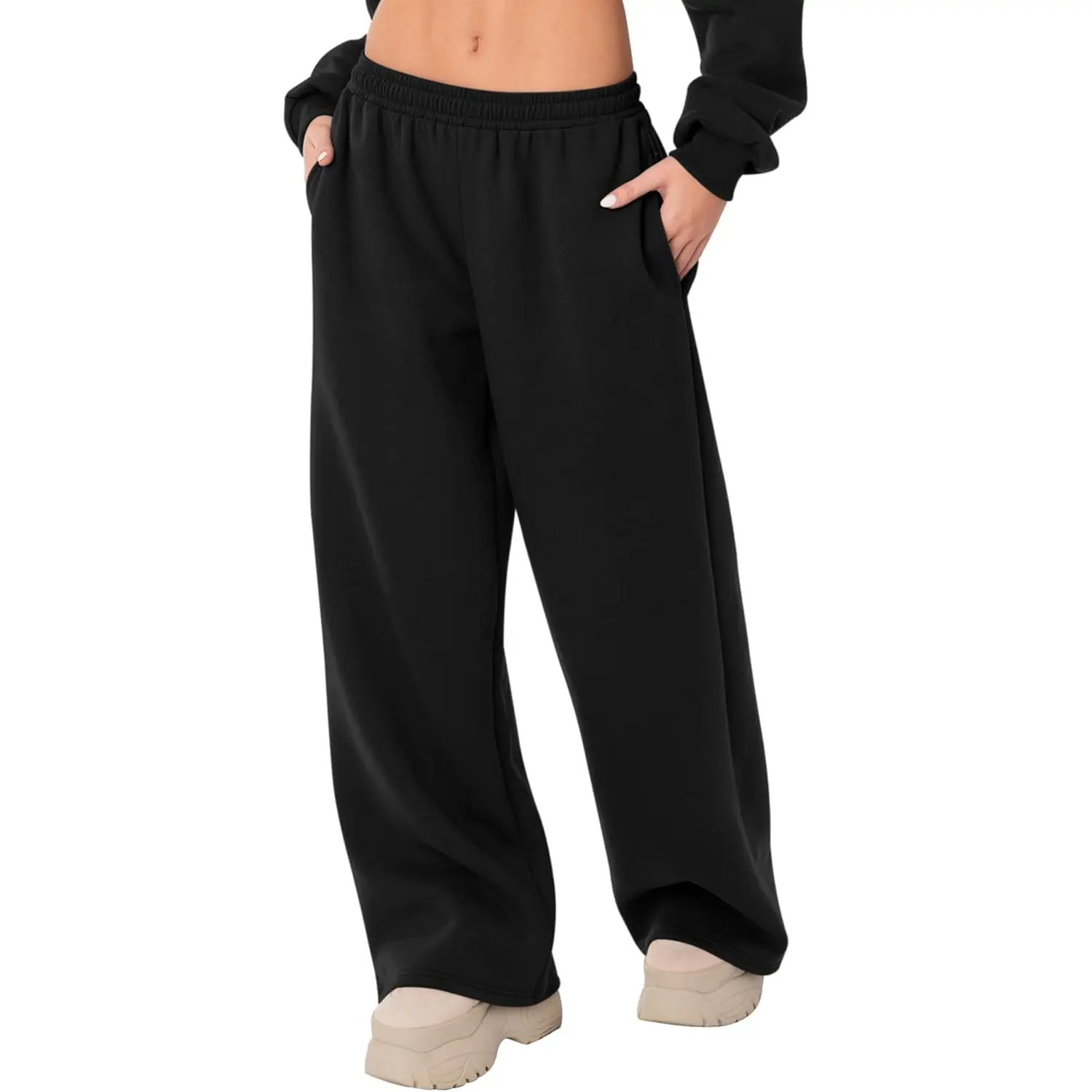 ·Pair these fleece wide leg sweatpants with a ribbed long-sleeve tee and canvas sneakers for weekend coffee runs, or style with a cropped hoodie and denim jacket for a relaxed street look. For a cozier feel, choose an oversized knit sweater and ankle boots for shopping days or campus strolls. Add a longline cardigan or winter coat for bookstore dates, brunch, or casual errands.