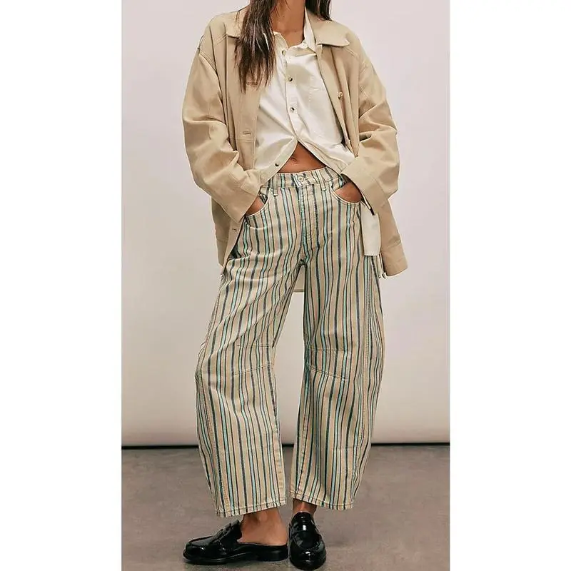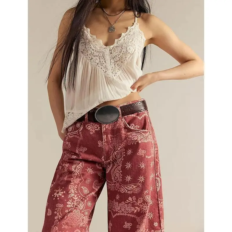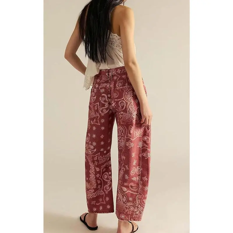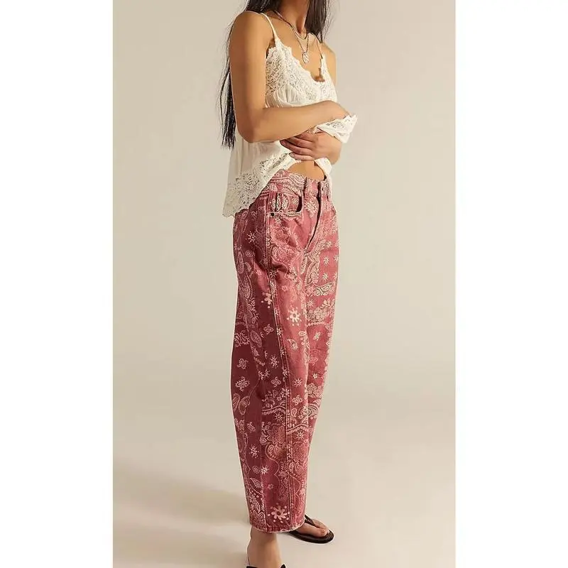 Women Boyfriend Baggy Barrel Jeans Floral Print Denim Ankle Pants Wide Leg Mid Rise Jeans Sweatpants Y2k Patchworkchristmas home decor