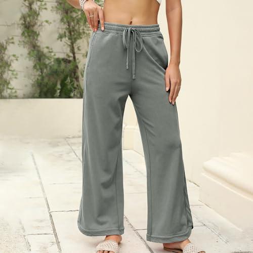 ·Womens casual sweatpants, relaxed and loose wide leg silhouette, high rise elastic drawstring waist, cute piping detail down the sides