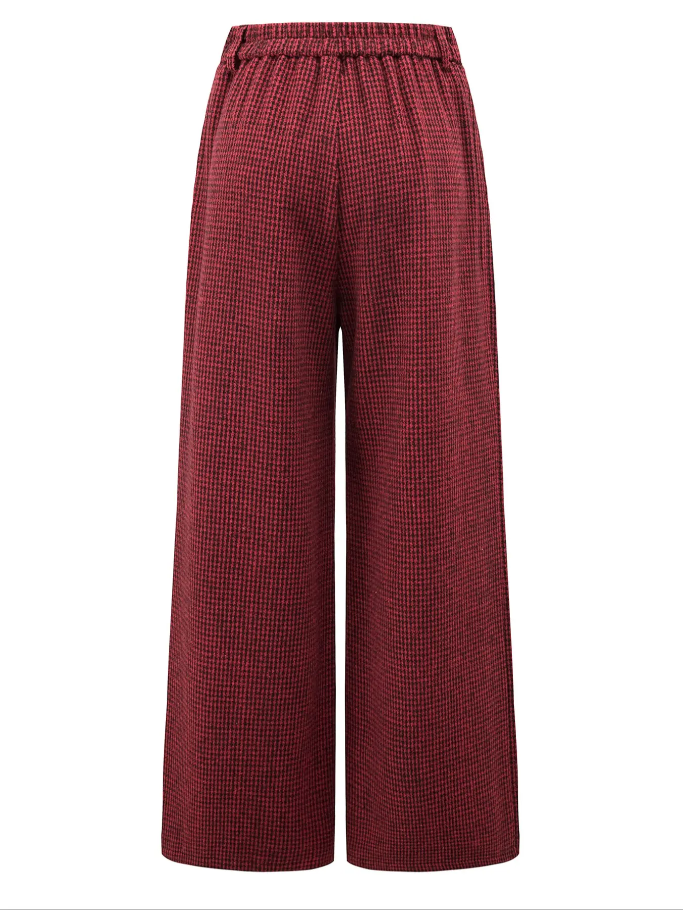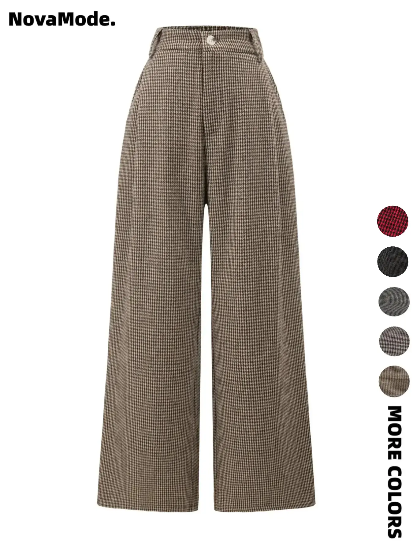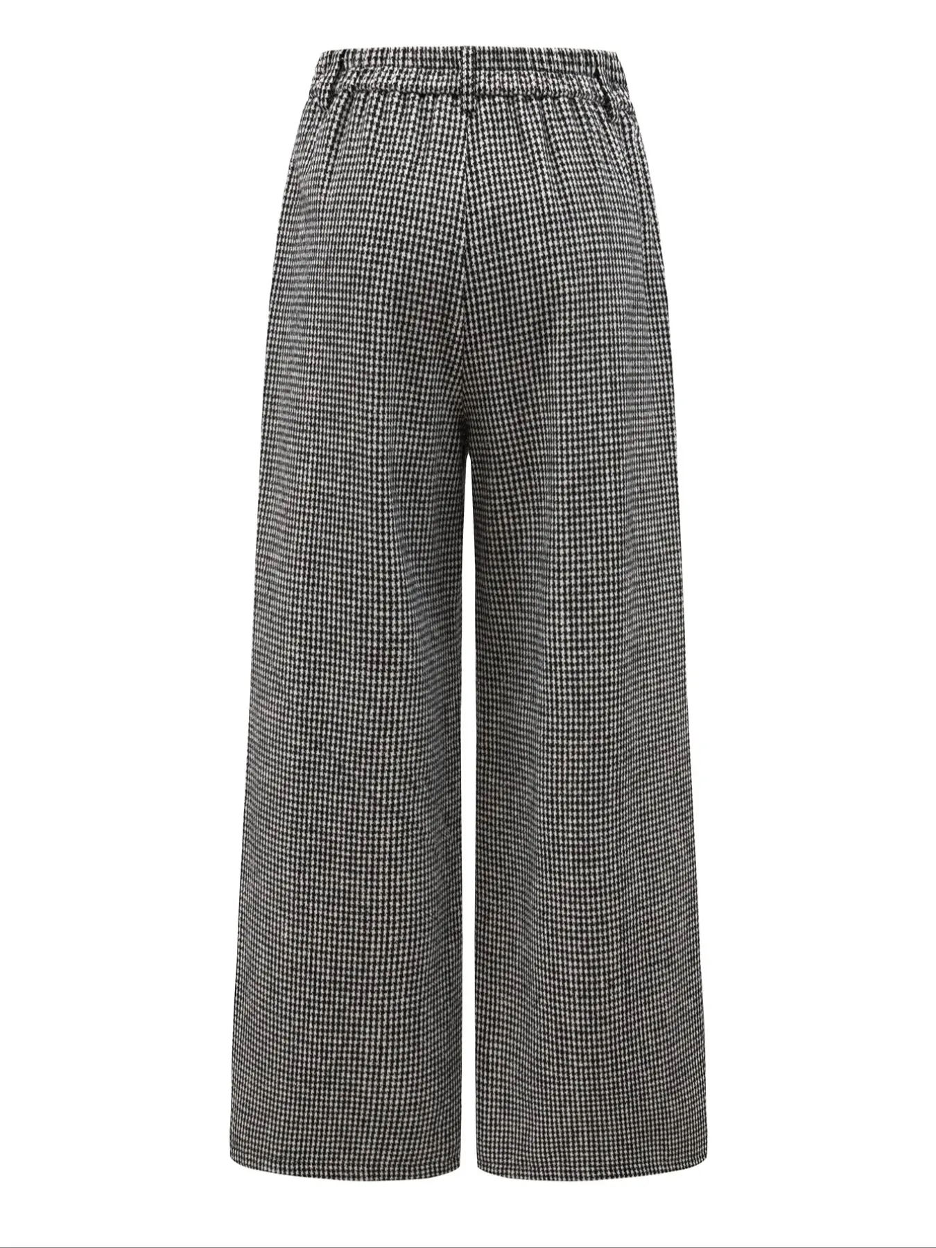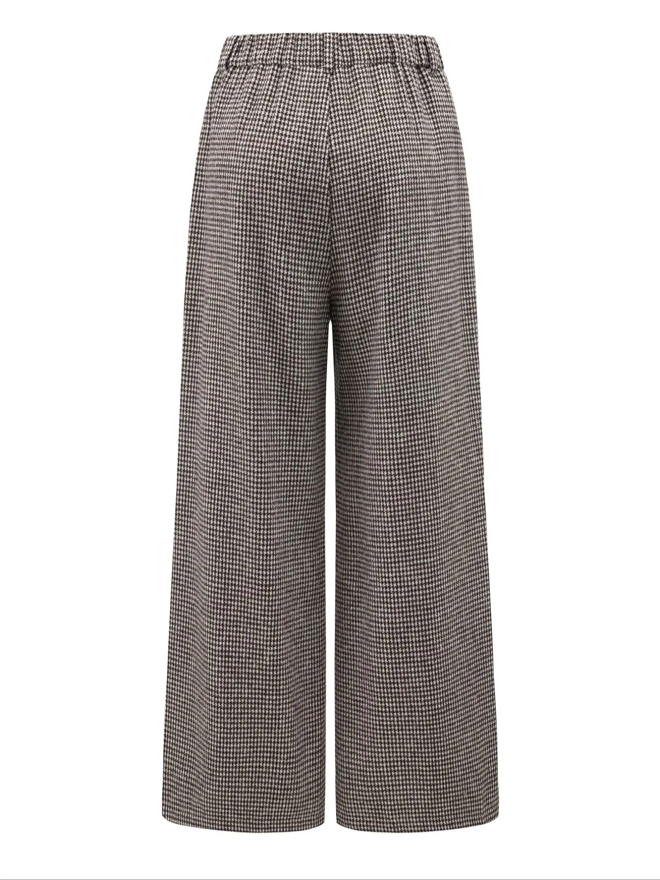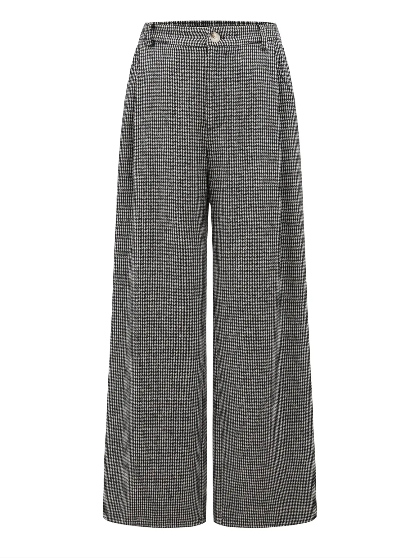 Beautiful houndstooth pattern with thick, quality fabric. Warm, flattering fit, and the elastic waist makes it comfortable for fall and winter. Very happy with this piece.
