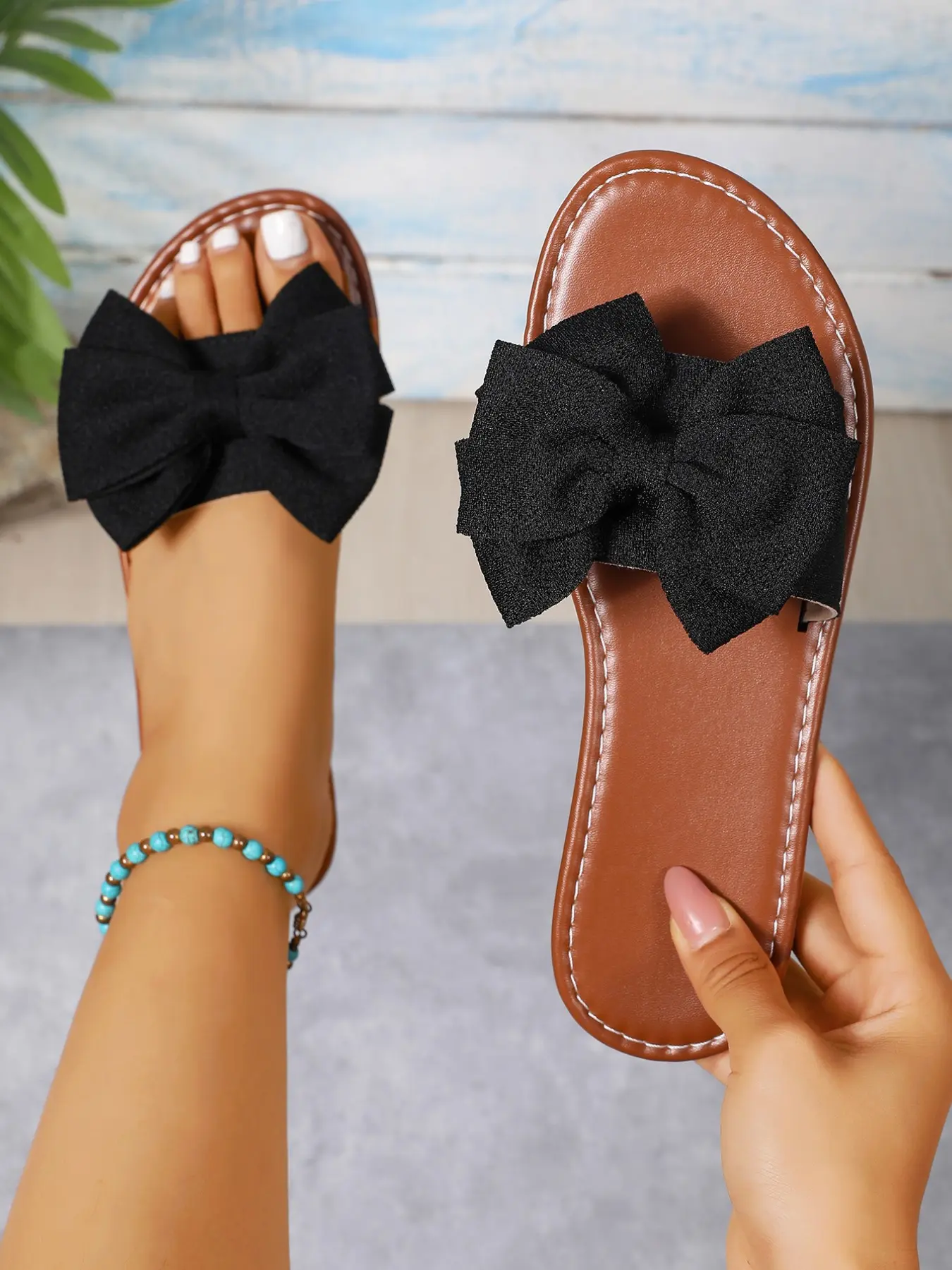 Women's Wide Width Flat Sandals, European Style Open Toe Design, Bow Detail Fabric Material, Perfect for Beach and Outdoor Use. @Custom Tailored Chic #flatsandals #sandal #sandals #tiktokshop #creatorsearchinsights
