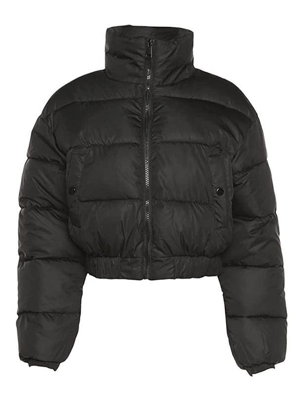 Features: Full zip up winter coat, cropped length quilted puffer jacket, stand collar warm bubble coats. Size: XS=US(2), S=US(4-6), M=US(8-10), L=US(12-14), XL=US(16-18).