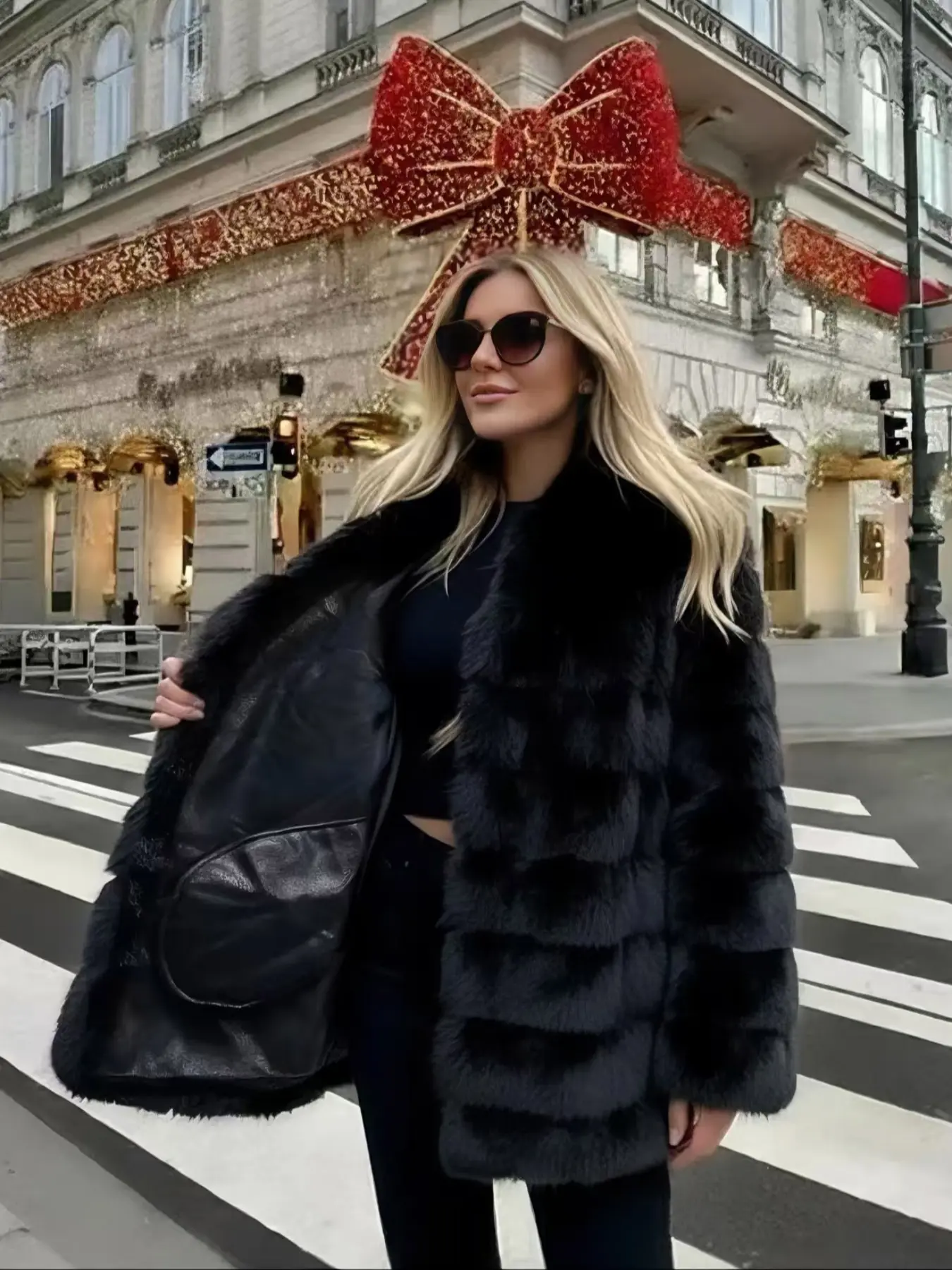 【Faux Fur Material】: Crafted from high-quality faux fur, this coat provides a luxurious look while being animal-friendly.