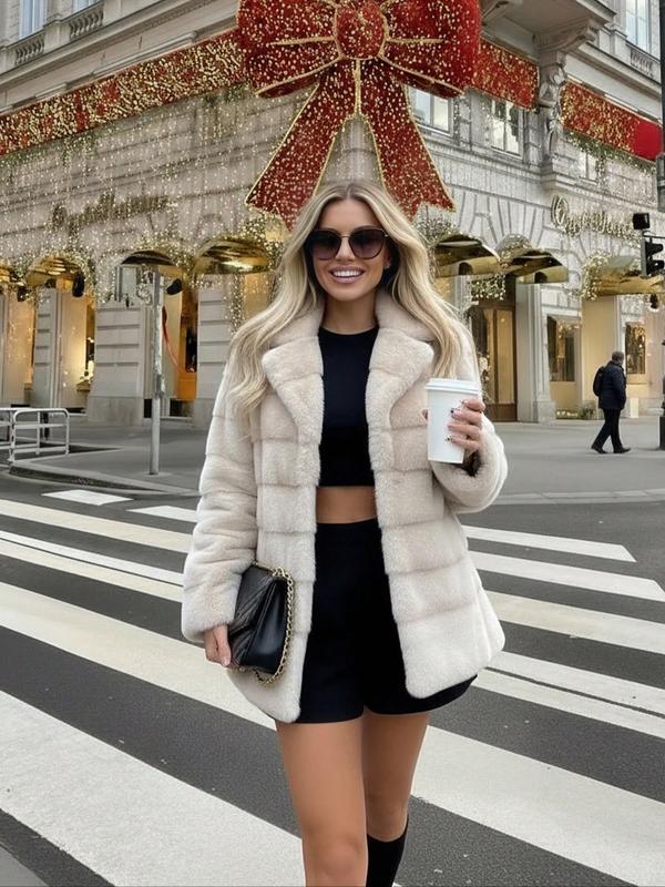 5. Women's Winter New Faux Fur Jacket Coat, Elegant Vintage Loose Long Sleeve Stand Collar, Daily Fashion Outerwear
