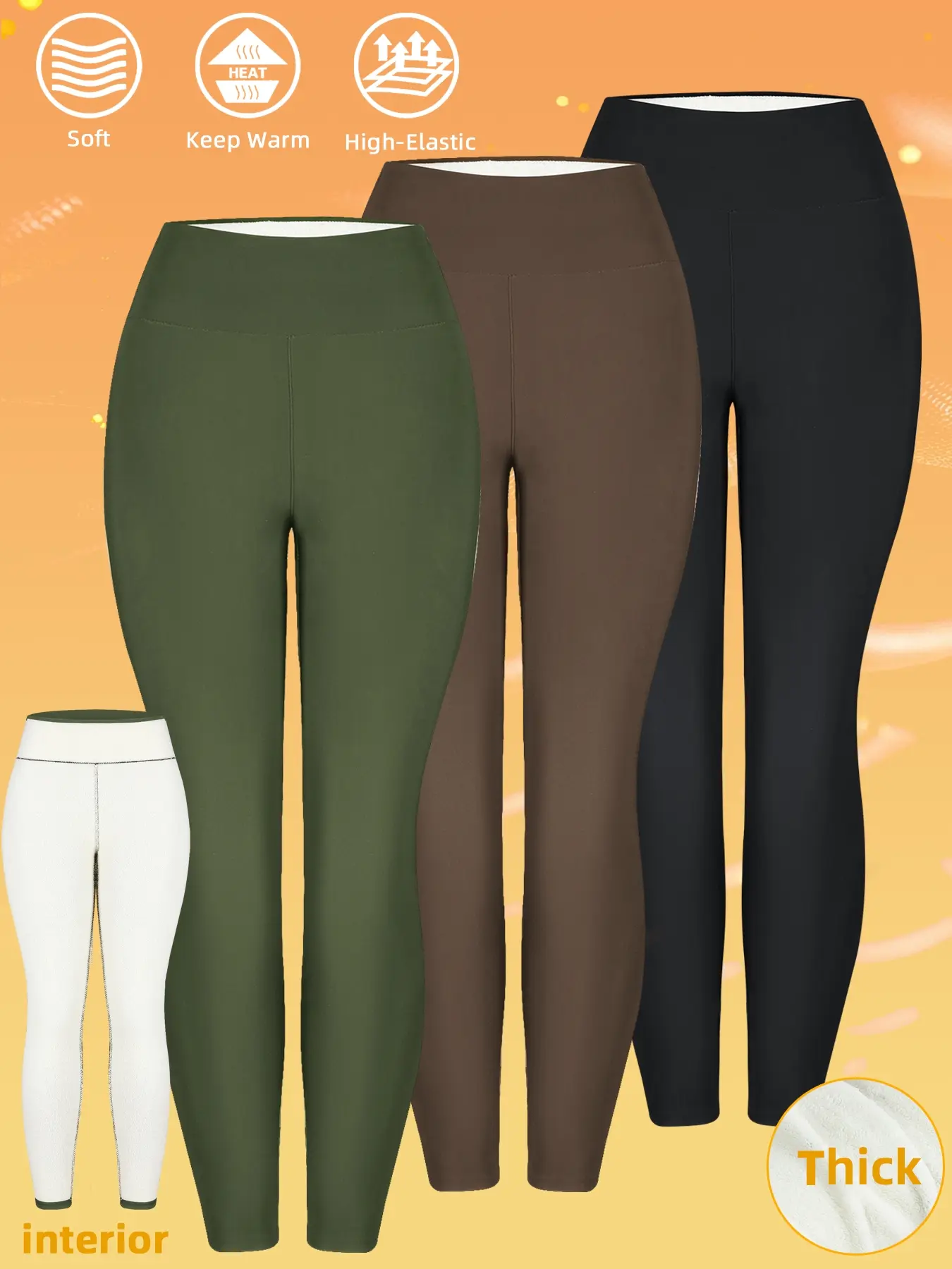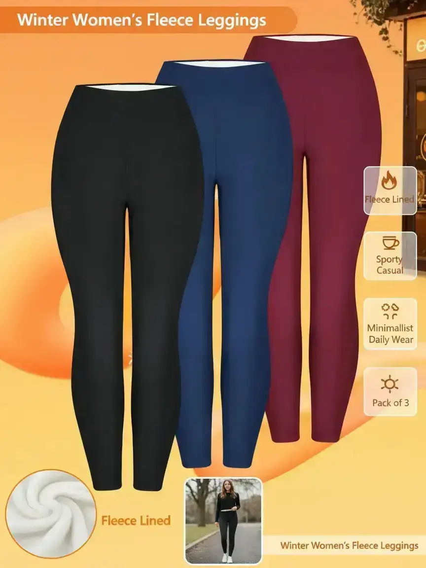 Women's 3-Piece Winter Fleece-Lined Leggings, High-Waisted Warm Long Pants, Sporty Casual Minimalist Daily Wear, Thick and Comfortable