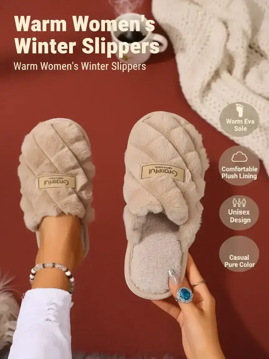 Women's Winter Slippers, Warm Eva Sole, Thick Cushioning, Indoor Home Shoes, Casual Pure Color, Comfortable Plush Lining, Unisex, Fuzzy Warm Slippers #comfyshoes #cozyfleeceblanket #cutebarefootshoes #womenswedgeshoes #sportyslides #uggcozyslippers #cozywintermusthave #skechersslipinscozyfit #fashionableslippers #craftedsuedeclogs