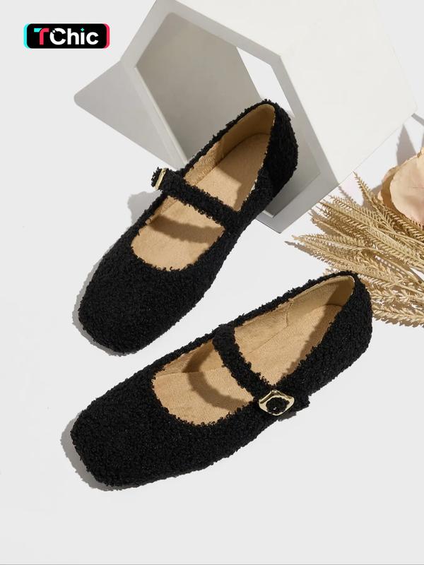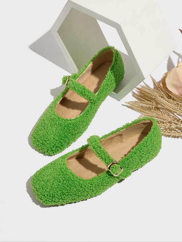 5. Women's Fashion Flat Square Toe Faux Fur Single Shoe, Retro Style, Comfortable Outdoor Maternity Shoes, Spring & Fall, Furry Shoes