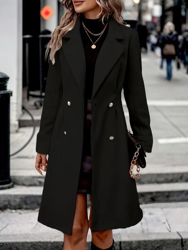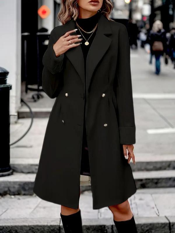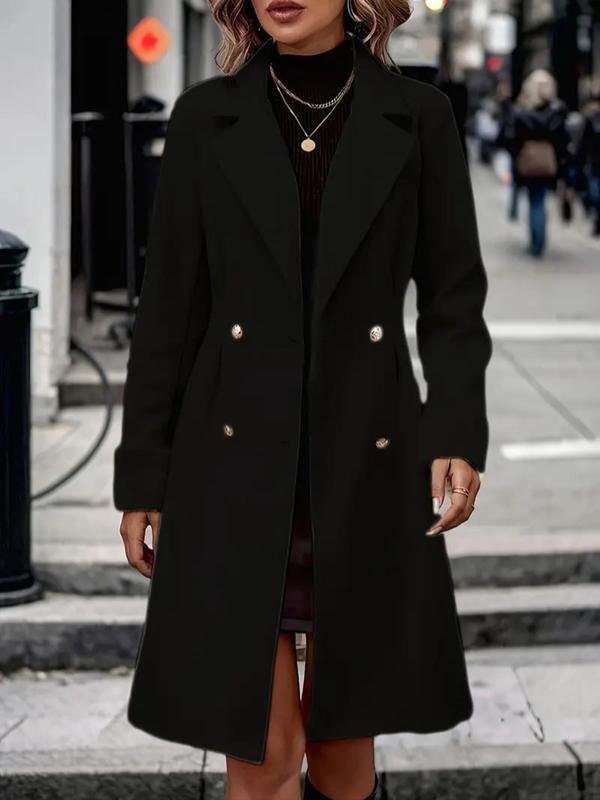 Women's Winter Woolen Coat, Casual Lapel Design, Simple Solid Color, Dual Button Mid-Length Overcoat, Fashionable Outerwear