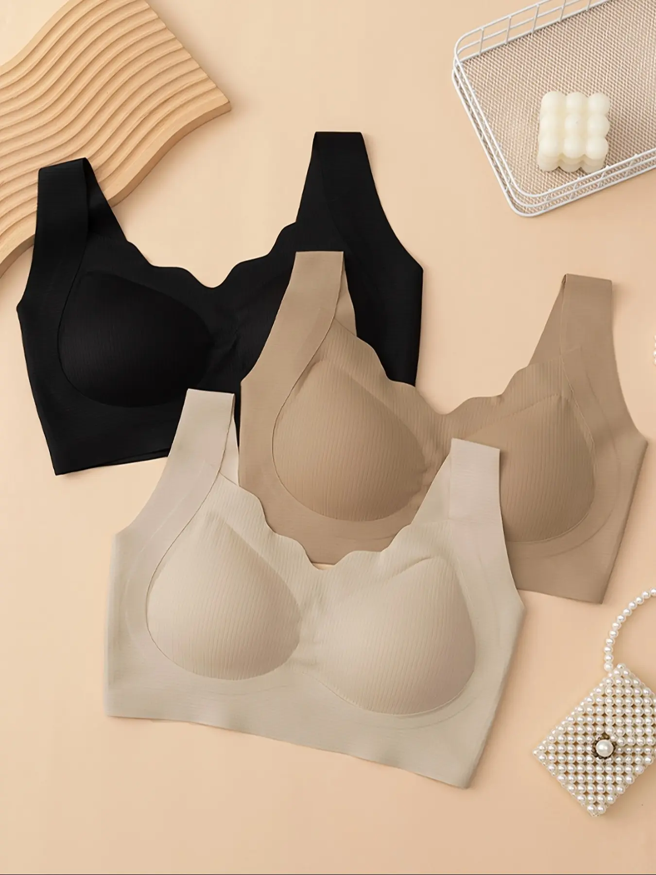Women's Wireless Bras Set, Womenswear, Comfortable Breathable Smooth Underwear, Removable Pads, No Hooks, Casual Daily Wear, Pack of 4
