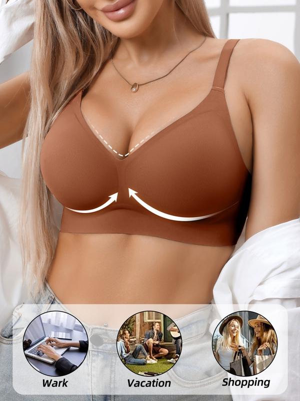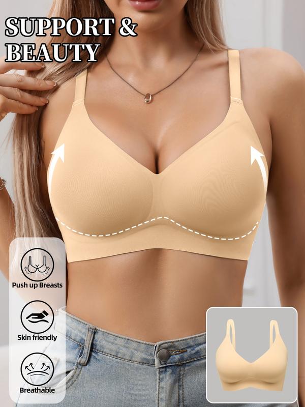Women's Wireless Jelly Bra, Deep V Design, Medium Support, Plain Pattern, Fitted Lining, All Seasons, Casual Style #pushupbra #braforlargebust #bikinitrimmerforwomen #shapewearswimsuit #backlessshapewear #underwirefreebra #paddedunderwearforwomen #shapewearjumpsuit #flatteringactivewear #highwaisttummycontrolpantiesforwomen
