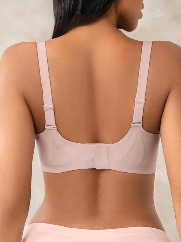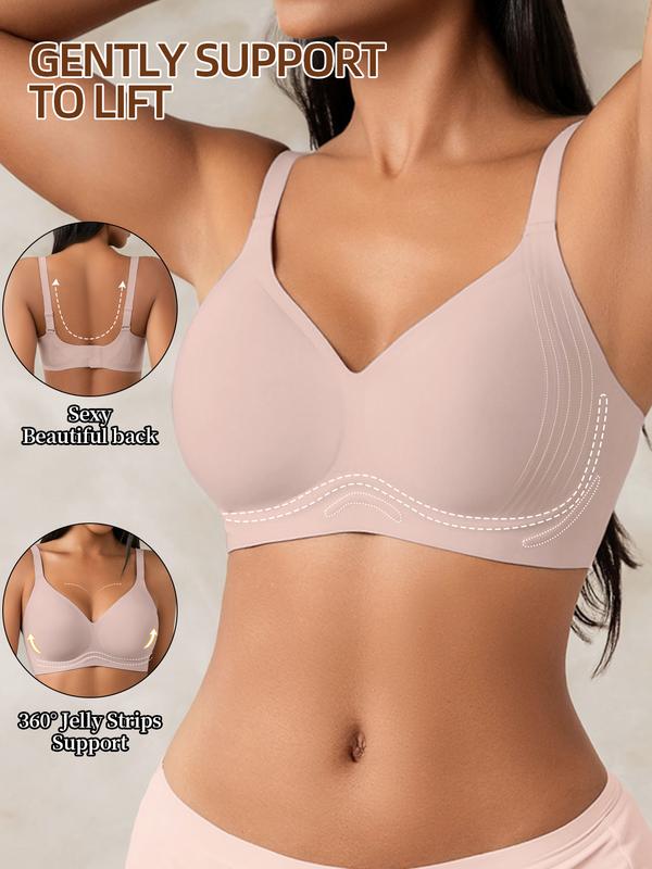 Women's Deep V Wireless Jelly Bra, Wide Shoulder Straps, Removable Pads, Medium Support, Casual Plain Design, All Seasons