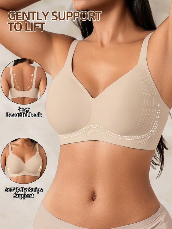5. Women's Deep V Wireless Jelly Bra, Wide Shoulder Straps, Removable Pads, Medium Support, Casual Plain Design, All Seasons