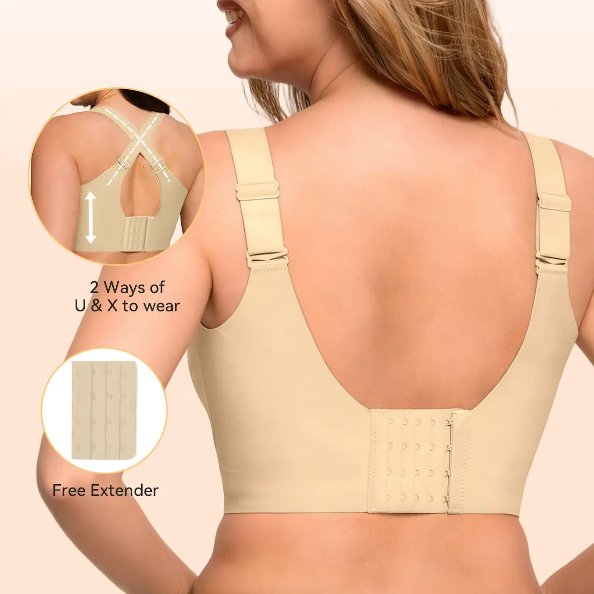 Back Smoothing & Relief: Widened side wings and 4-row back hooks effectively hide bulges and evenly distribute pressure for all-day comfort.