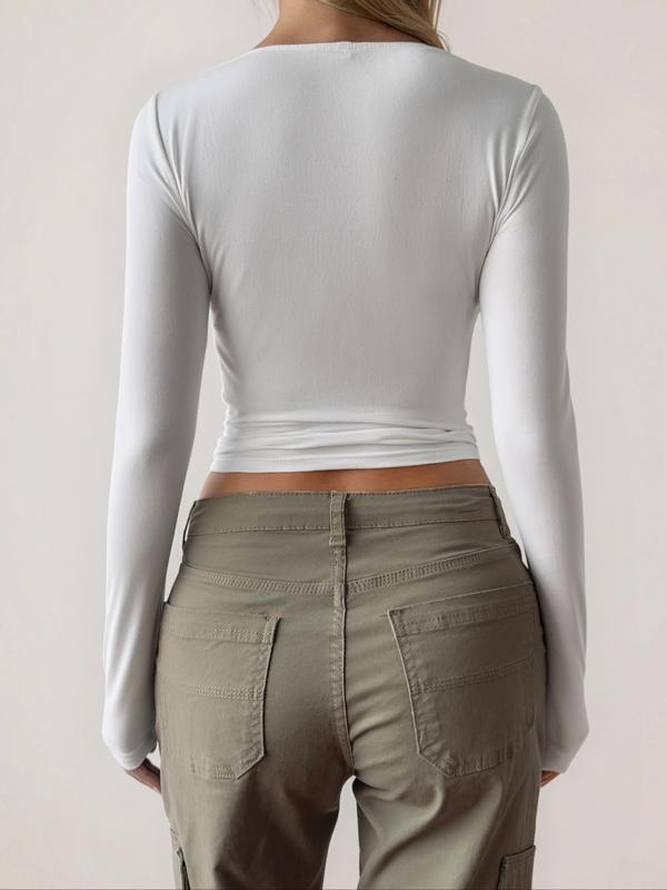 Women's Y2K Sexy Deep V Long Sleeve Crop Top, Comfortable Fabric, Slim Fit, Perfect for All Seasons, Casual Fashion Tee