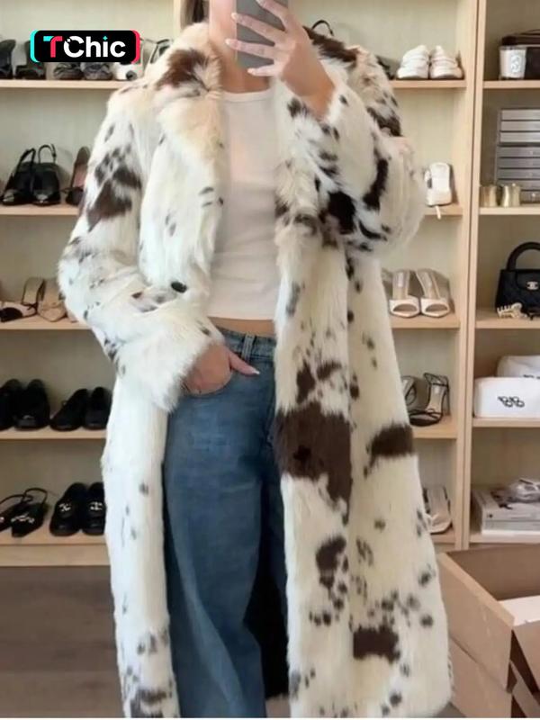 Women's Y2K Faux Fur Coat, Long Loose Winter Jacket, Spotted Animal Print Plush Outerwear, Street Style Luxury Warm Overcoat #TikTokShopBlackFriday #TikTokShopCyberMonday #spotlightfinds #ootd/  #clothing