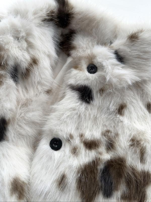 Women's Y2K Faux Fur Coat, Long Loose Winter Jacket, Spotted Animal Print Plush Outerwear, Street Style Luxury Warm Overcoat