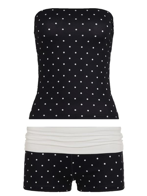 This black background with white dots strapless set is both retro and eye-catching. I just love it! 😍🔥 #tiktokshoprestock #spotlightfinds #tiktokshopblackfriday #tiktokshopcybermonday #tiktokshopfalldealsforyou #foryoupage #2pieceset #twopieceset #shorts #comfy #outfit