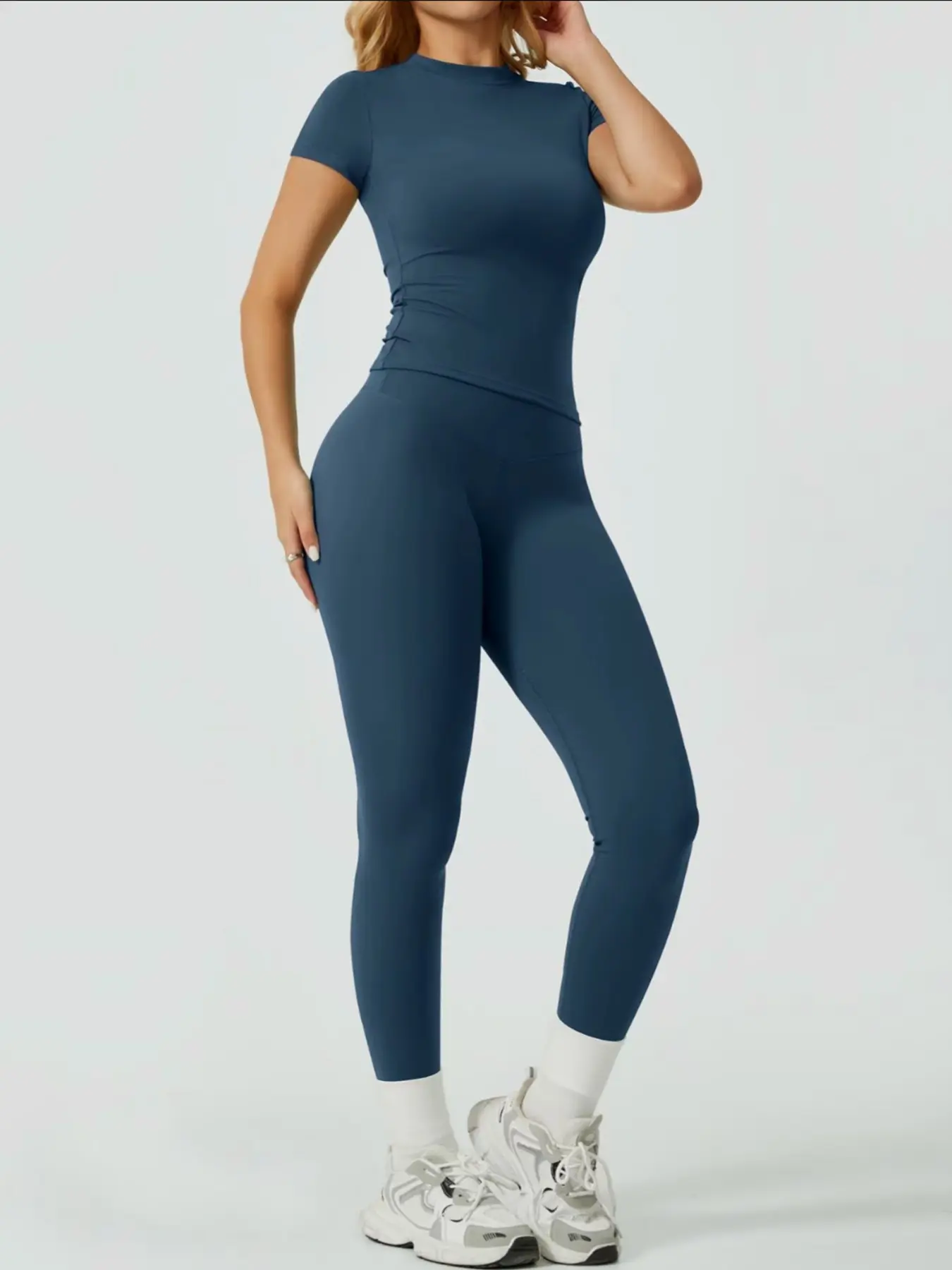 Short sleeve + leggings = year-round outfit. Layer it in winter, rock it solo in summer. Versatility FTW! #gymoutfit #twopieceset #yogaoutfit #tiktokmademebuyit #spotlightfinds