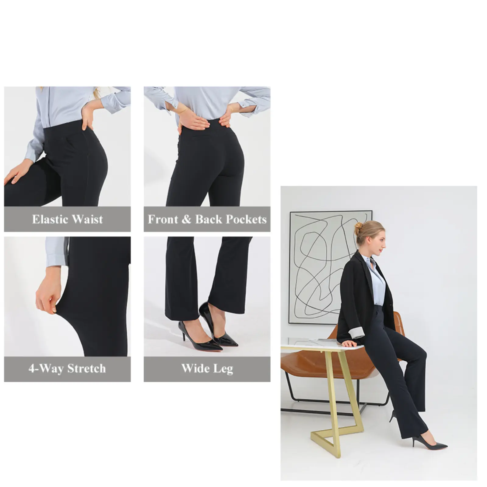 Made with ultra-soft, breathable polyester-spandex fabric, these pants offer 4-way stretch for yoga-like flexibility while maintaining a polished, professional look. Perfect for all-day wear at work, travel, or even yoga class.