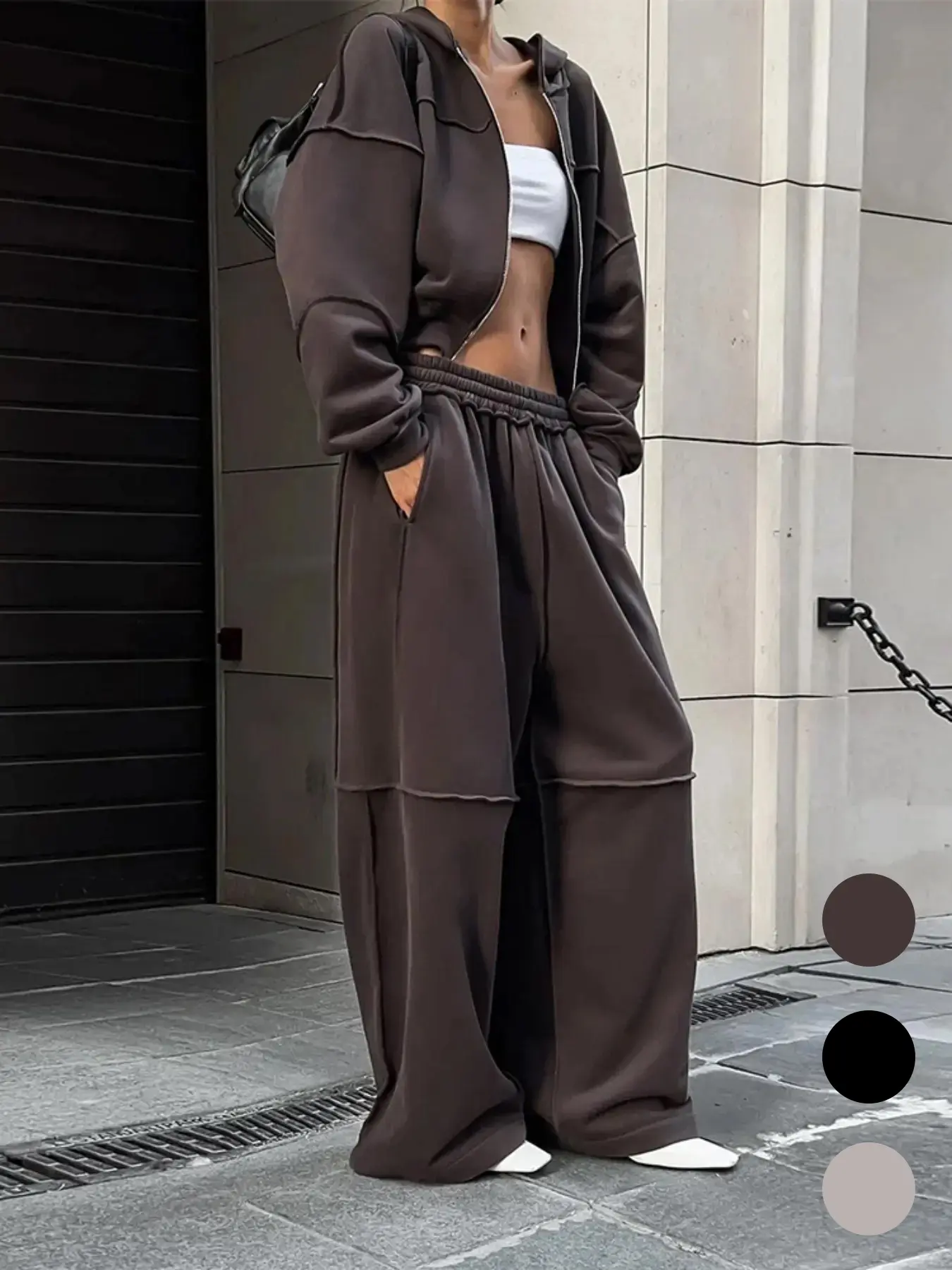 Ladies. this is a must buy tracksuit. It’s comfy,high quality & versatile. I’ve worn it everywhere from brunch to concerts & get endless compliments. The pants a stunning details make it a head turner. I’m definitely buying all colors-It’s a statement!!
