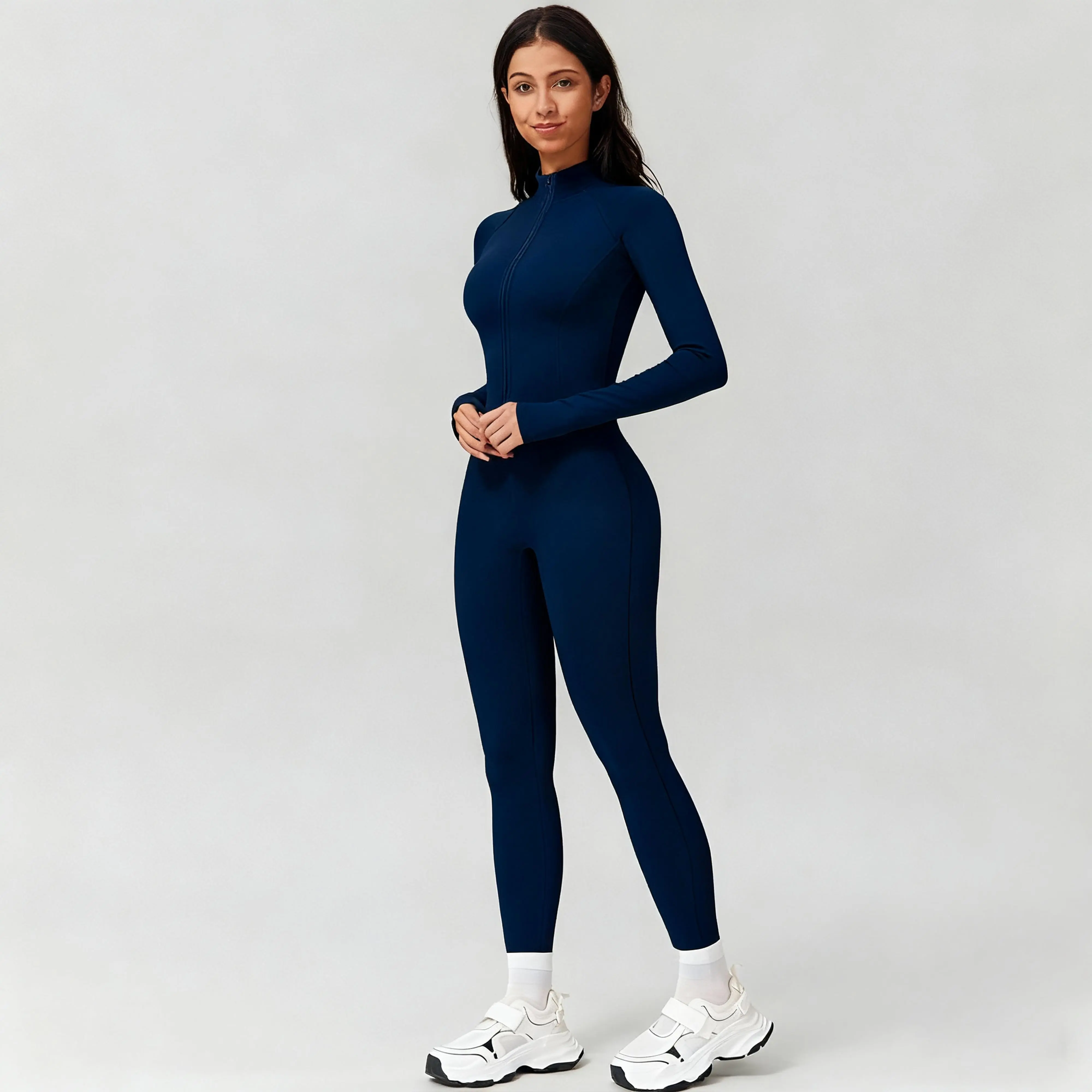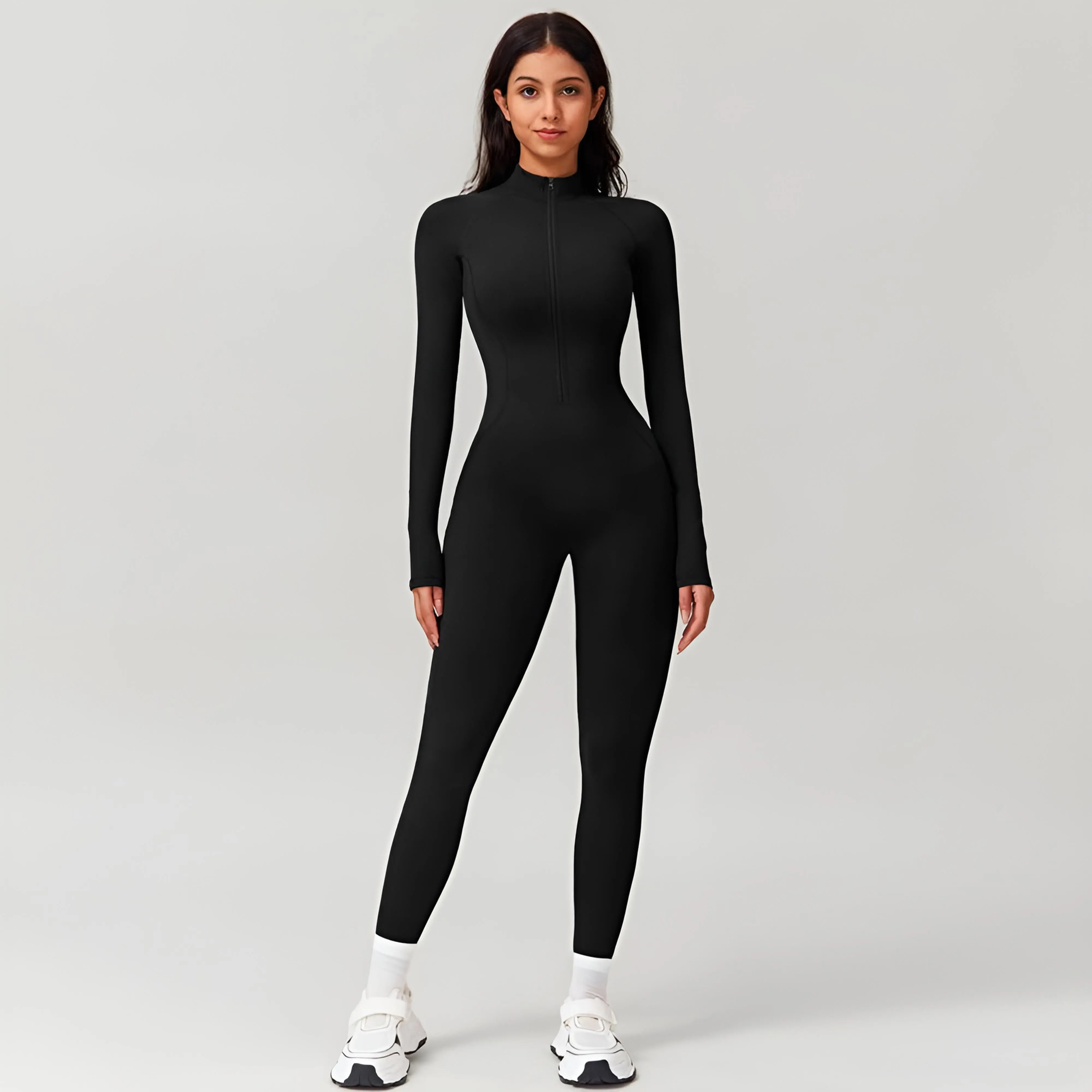Elevate your athleisure style with this Women's Zip-Up Unitard. Crafted for comfort and style, it features a stretchy, cuddly long sleeve turtleneck. Perfect for yoga, workouts, and everyday wear, this seamless bodysuit hugs your body effortlessly. ️