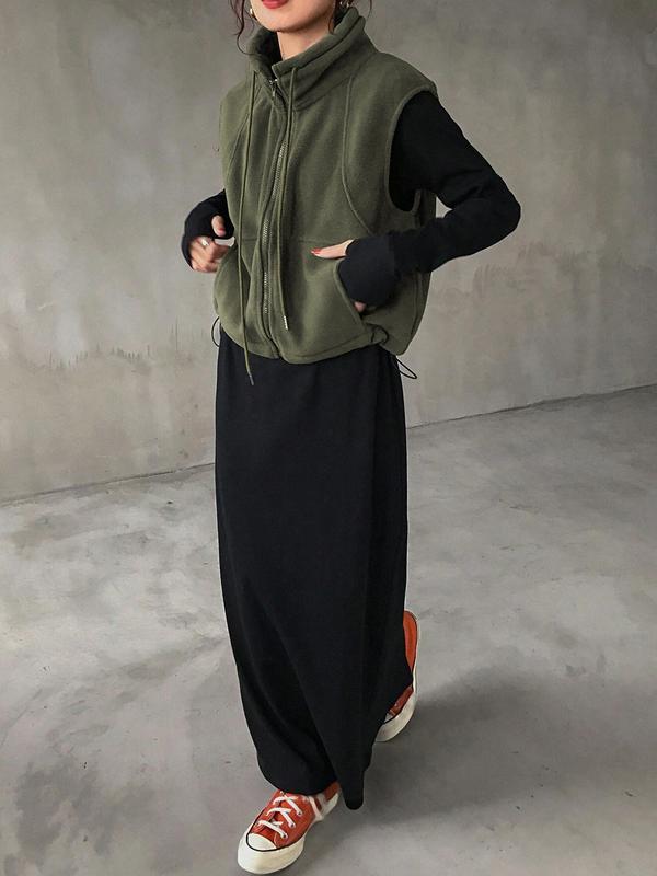 Women's Zipper Fleece Vest, Casual Versatile, Perfect for Autumn Winter, Daily Wear, Street Style, Comfortable and Stylish