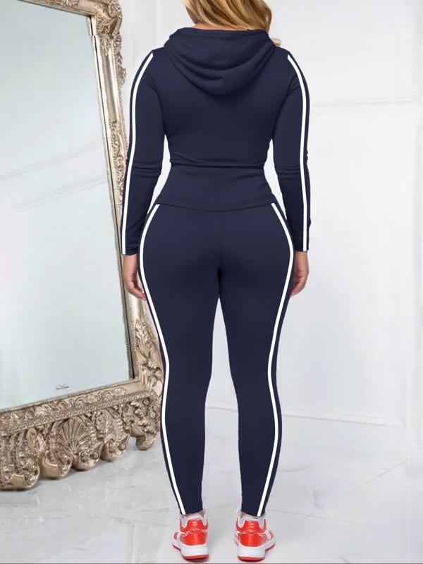 Women's Fall Zipper Hoodie and Skinny Pants Outfit Set, Casual Long Sleeve Pullover with Pocket Design, Two-Piece for Daily Wear