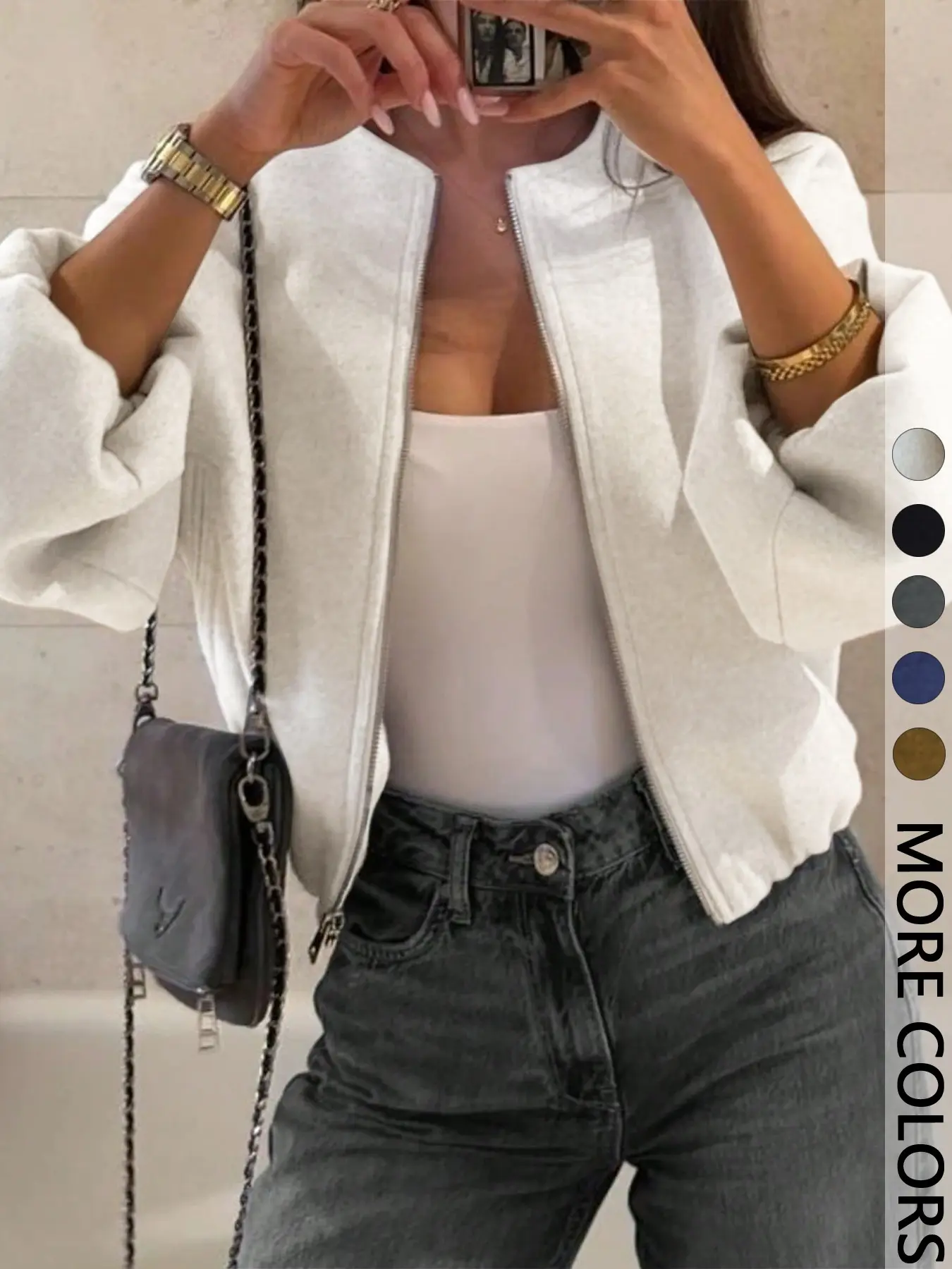 5. Women's Zipper Jacket Coat, Casual Style Women's Outerwear, Perfect for Fall & Winter Daily Wear, Fitted Design, Woven, Moderate Fabric Thickness
