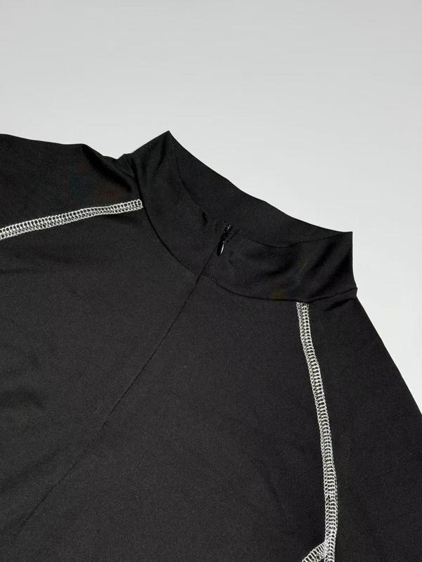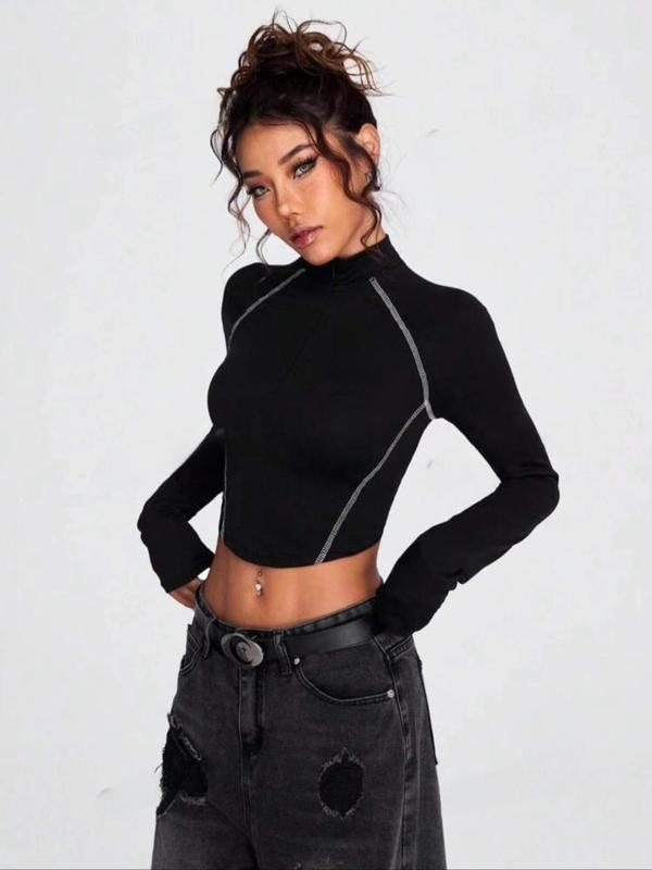5. Women's Solid Color Zipper Tee, Elegant Fashion Casual Long Sleeve T-shirt for Daily Outdoor Wear, Women Clothing for Spring & Fall