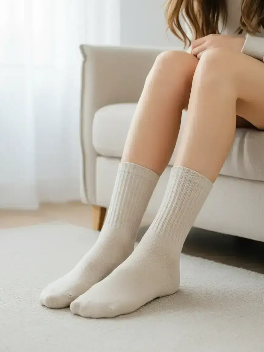 Thank goodness. I've been looking for this color everywhere! I have New Balance Fresh Foams but they are in the color Bone, not white. So white socks make them look dingy. These are perfect! Thin, but great.