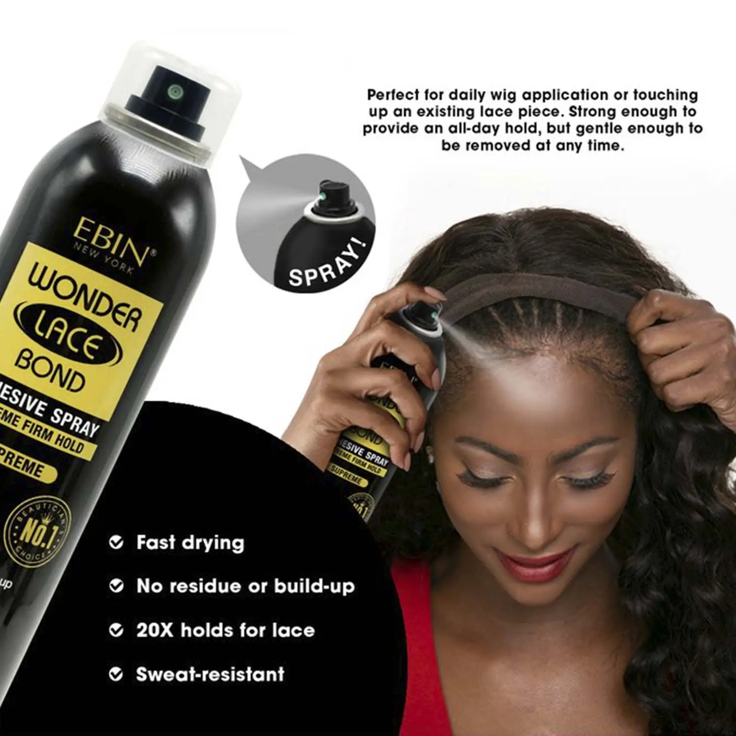 ·ADHESIVE SPRAY Wonder lace bond adhesive spray is a melting spray to melt your lace to secure your wig. Formulated to seamlessly blend into your hairline for natural look.
