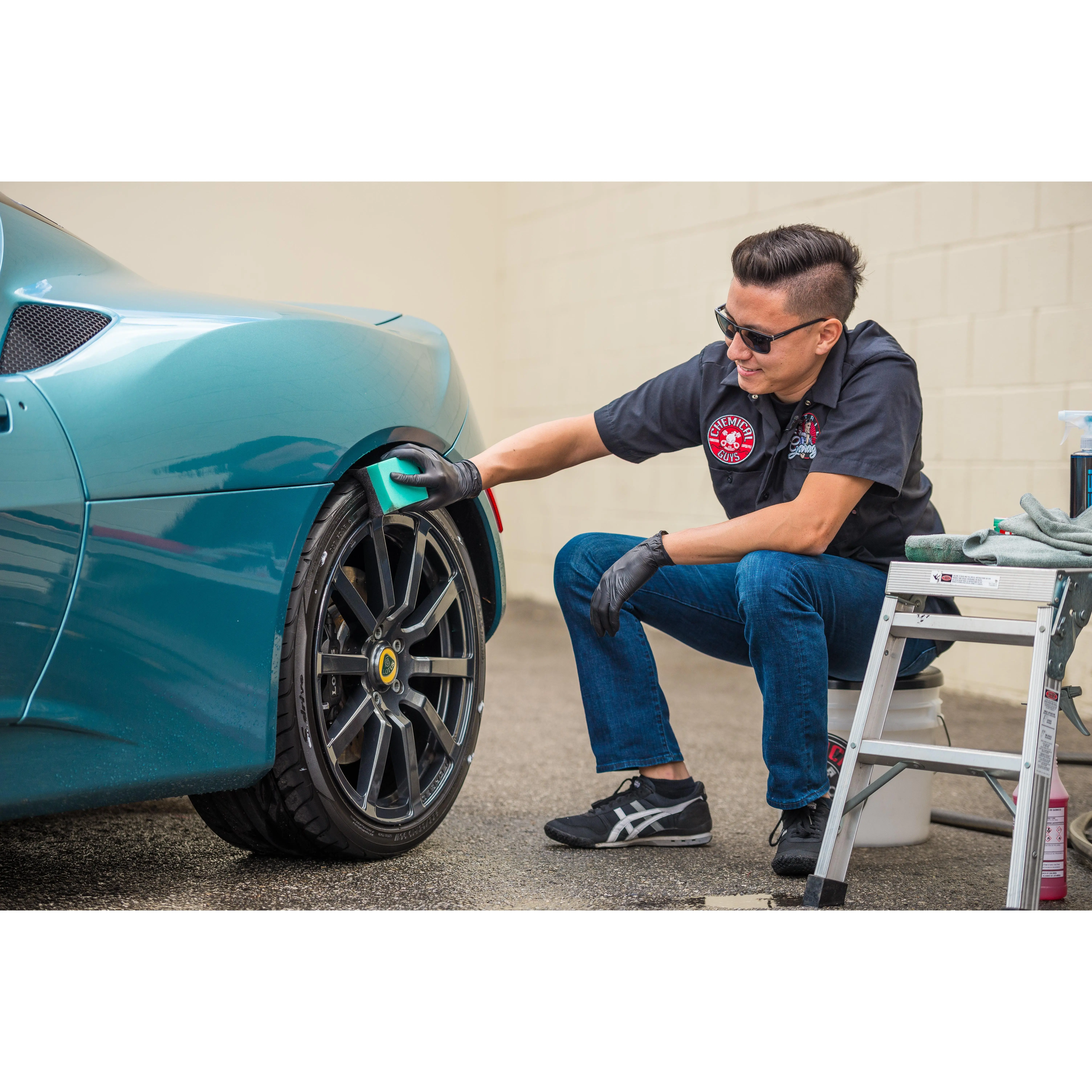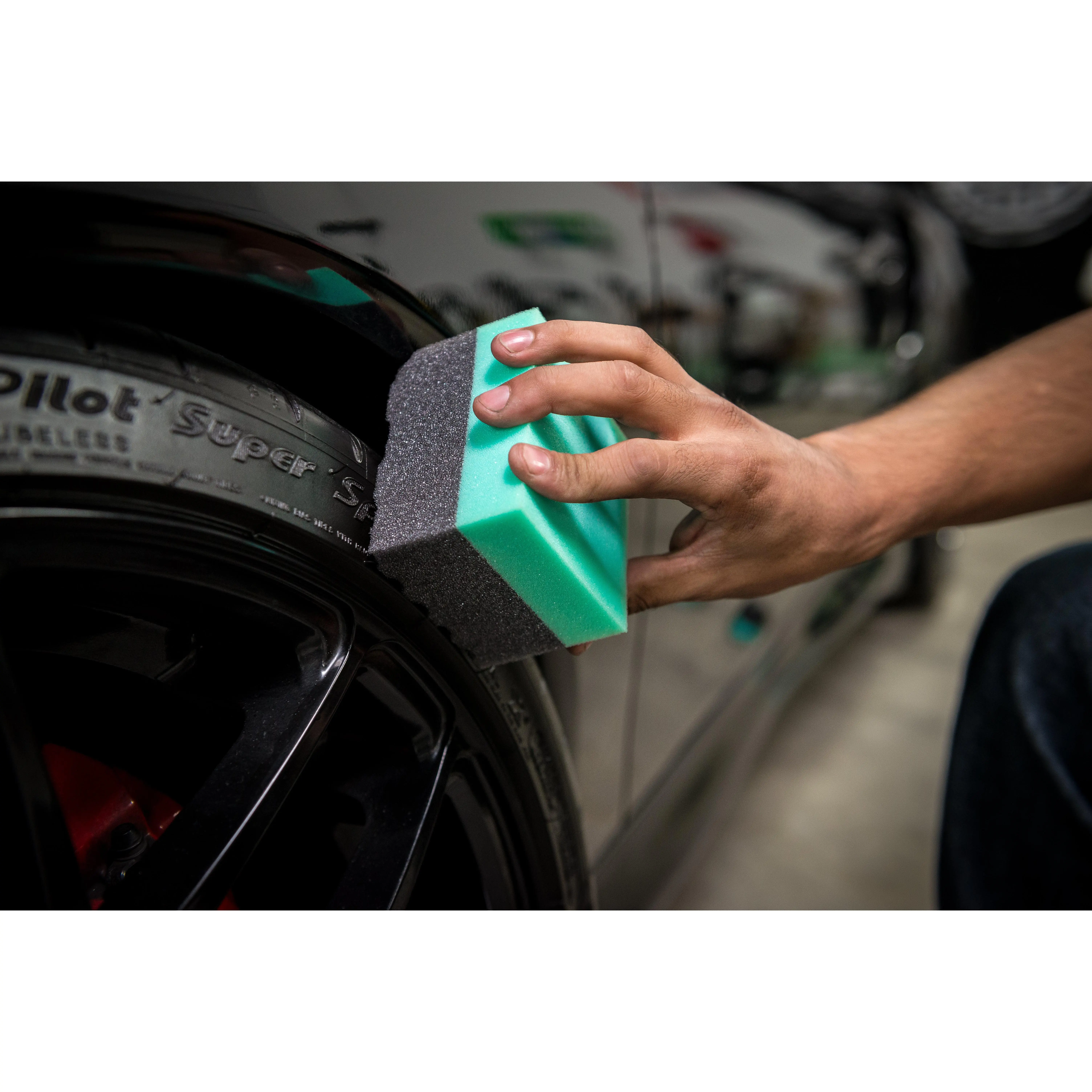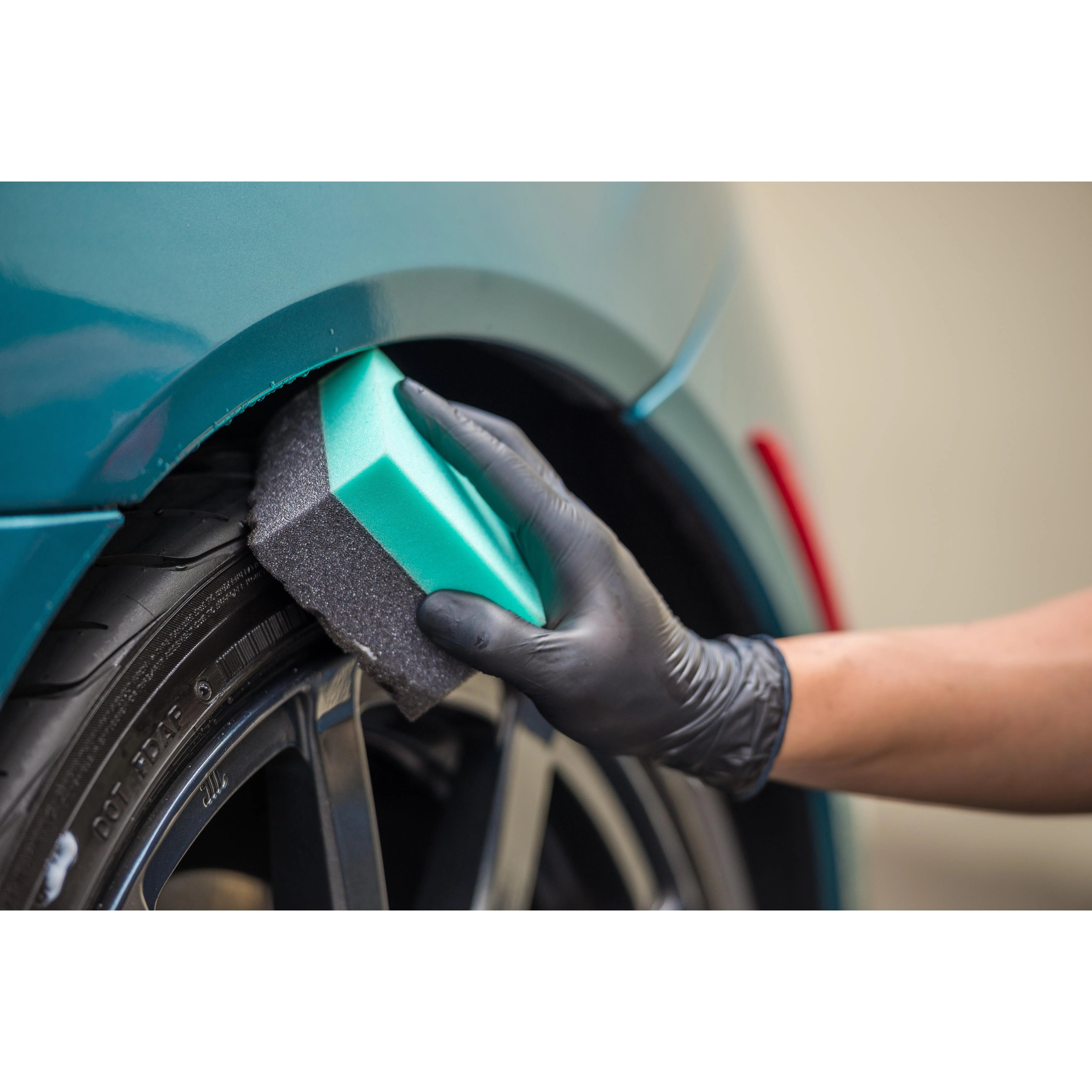 Use the Wonder Wave to spread a thin, even layer of your favorite Chemical Guys tire shine or dressing on rubber tires, plastic trim, vinyl door panels, and leather upholstery. The dense foam holds tight to spray dressings and creams, preventing messy drips from running over the surface while you work.