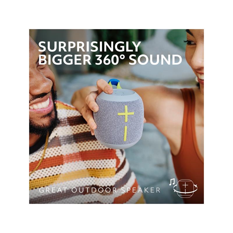 ·That bigger 360° sound in a petite package. Boosted sound for 14 hours of playtime.