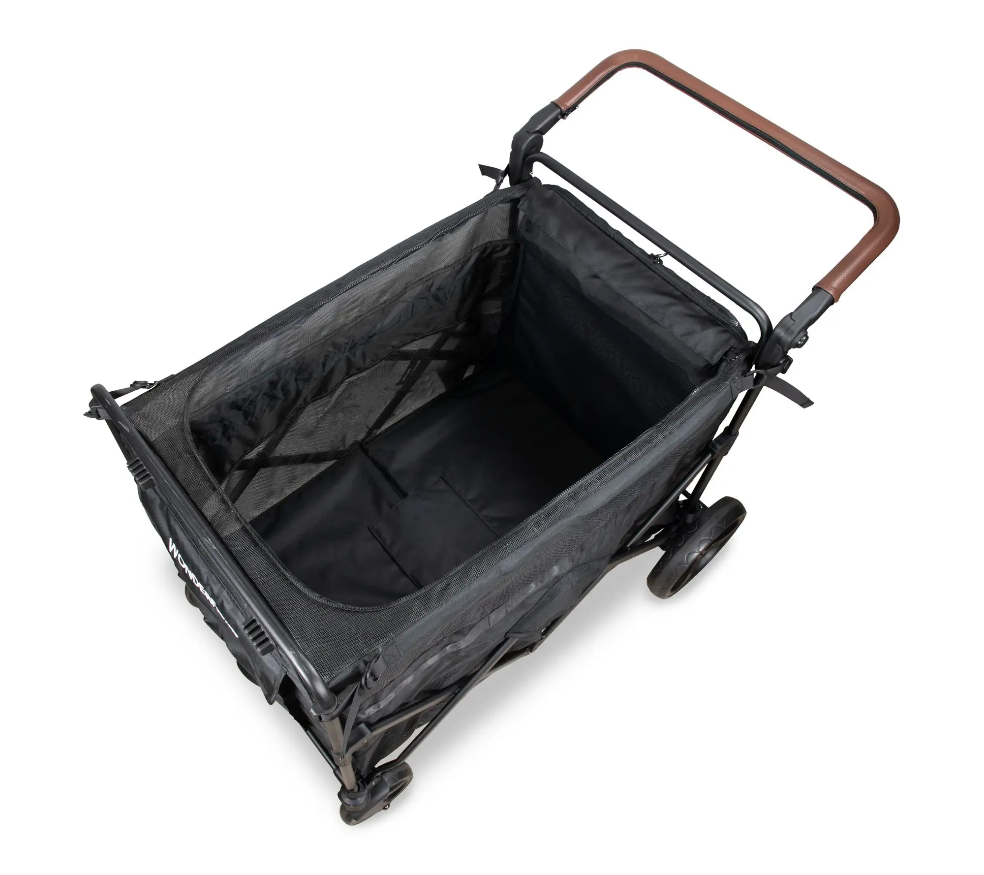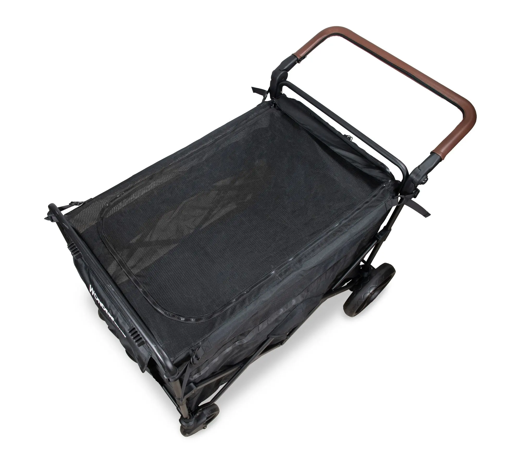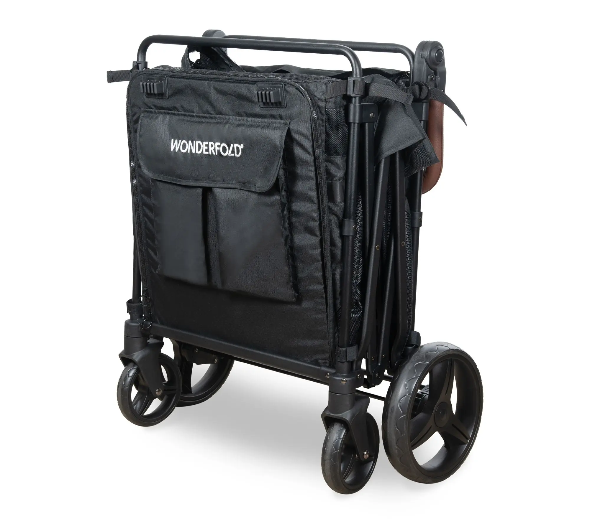Take your daily walks to the next level with this spacious pet stroller -- designed to accommodate larger dogs or multiple smaller companions while keeping them safe and comfy. Easy zippered entrances, a mesh top for breezy rides, and handy pockets for treats or essentials ensure every outing feels special. From Wonderfold.