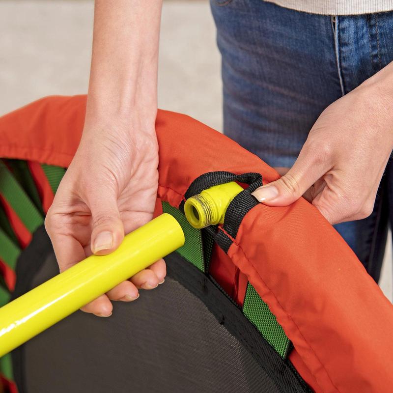 Removable handlebar and foldable design make it easy to store the trampoline in small spaces when not in use