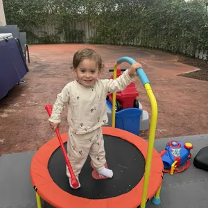 The Fisher-Price WonderJump Trampoline is the perfect way to help your preschooler burn off energy while improving their core strength and gross motor skills. Designed for children aged 3 and up, this trampoline features a stabilizing handlebar with a soft, foam grip, allowing your child to develop their balance, coordination, and strength as they laugh and jump on the durable yet cushioned trampoline surface. Setting up the WonderJump Trampoline is a breeze, with no tools required, and it can be assembled in just minutes. With its compact design, it fits most small spaces, making it perfect for indoor play. Whether you include this toy in your toddler's playroom or bedroom, this mini trampoline will be the perfect addition. The trampoline is built with safety in mind, featuring 6 non-slip foot pads that ensure reliable stability during every bounce. The clear, powder-coated steel frame is resistant to corrosion, providing long-lasting durability that supports up to 55 pounds. When your child is done jumping, simply remove the handlebar, unscrew the feet, and fold the trampoline for easy storage. Whether it's a quick bounce session or daily playtime, the Fisher-Price WonderJump Trampoline delivers endless fun while promoting physical development in your little one. Every day can be filled with bouncing play with this active toy.