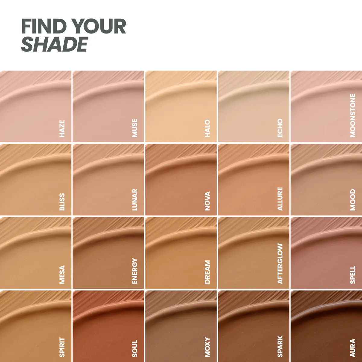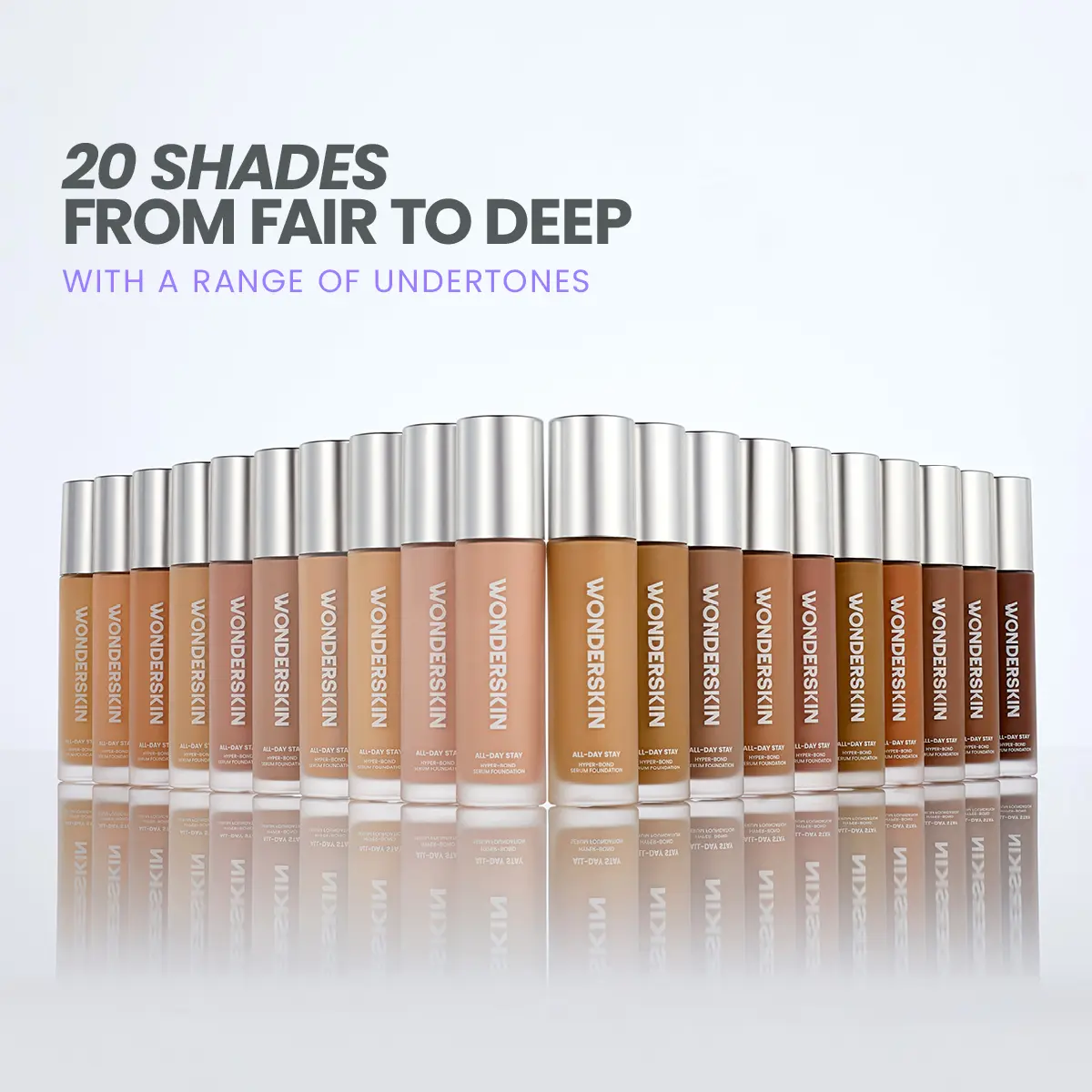 20 inclusive shades: A wide range of tones with cool, warm, and neutral undertones for a true-to-skin, second-skin finish.