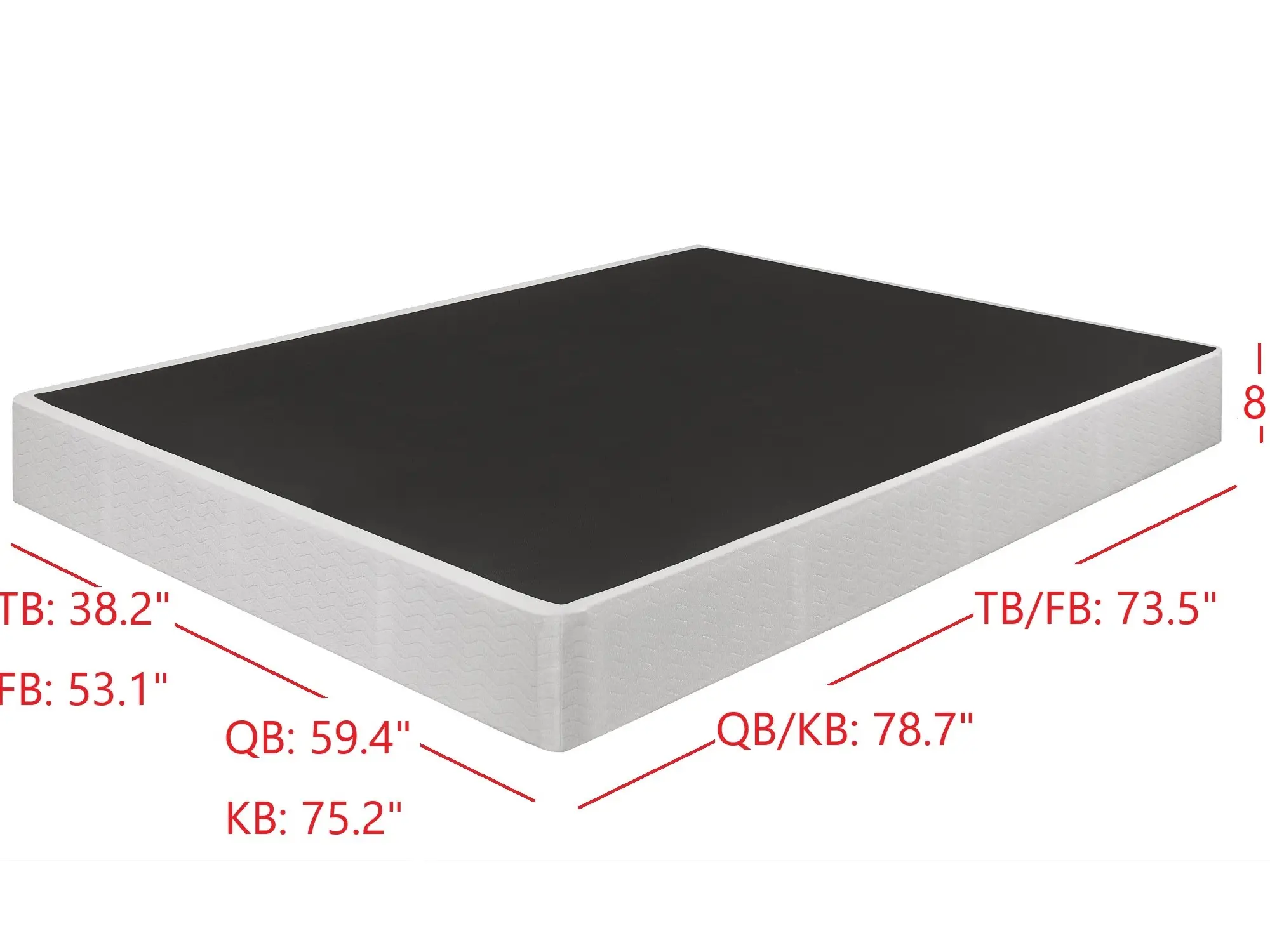 King Size: 7.7 inches in height, 75.2 inches in width, 78.7 inches in length