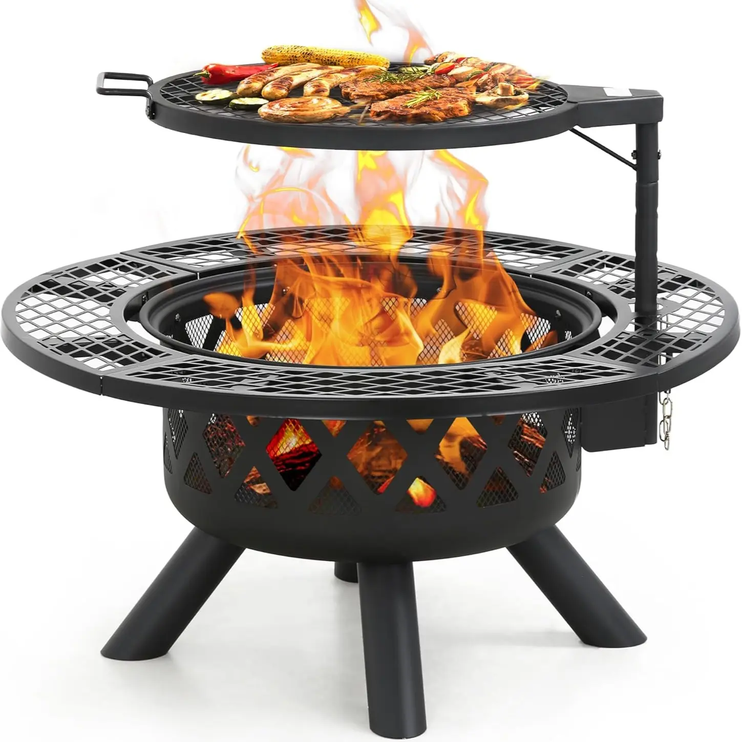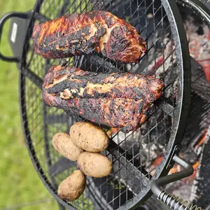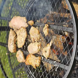 I love this fire pit. I've had it 7 days already cooked 3 meals on it. Easy to assemble and to start the fire. The cooking is up to you. It came easy for me. No complaints on dinner yet..i started all meet frozen.