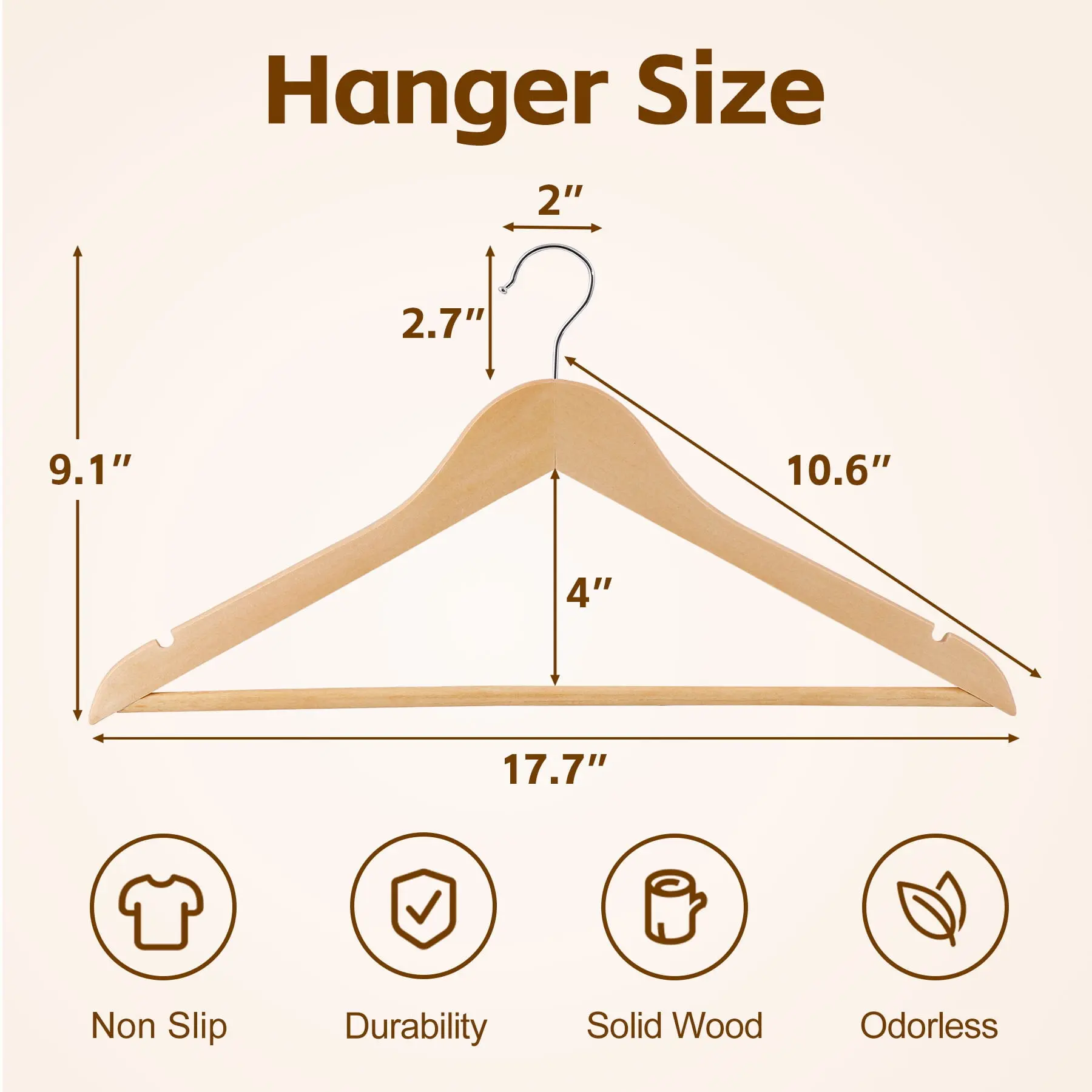 ·Comes in 50 solid wood hangers that measure 17.7"L x 0.5"W x 9"H, which is perfect for adult-sized clothing.