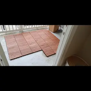 2.Spacing Design, Non-slip Surface: The wooden deck tiles are designed with spacing between each wooden slat to boost friction, ensuring a slip-resistant surface that prevents water accumulation
