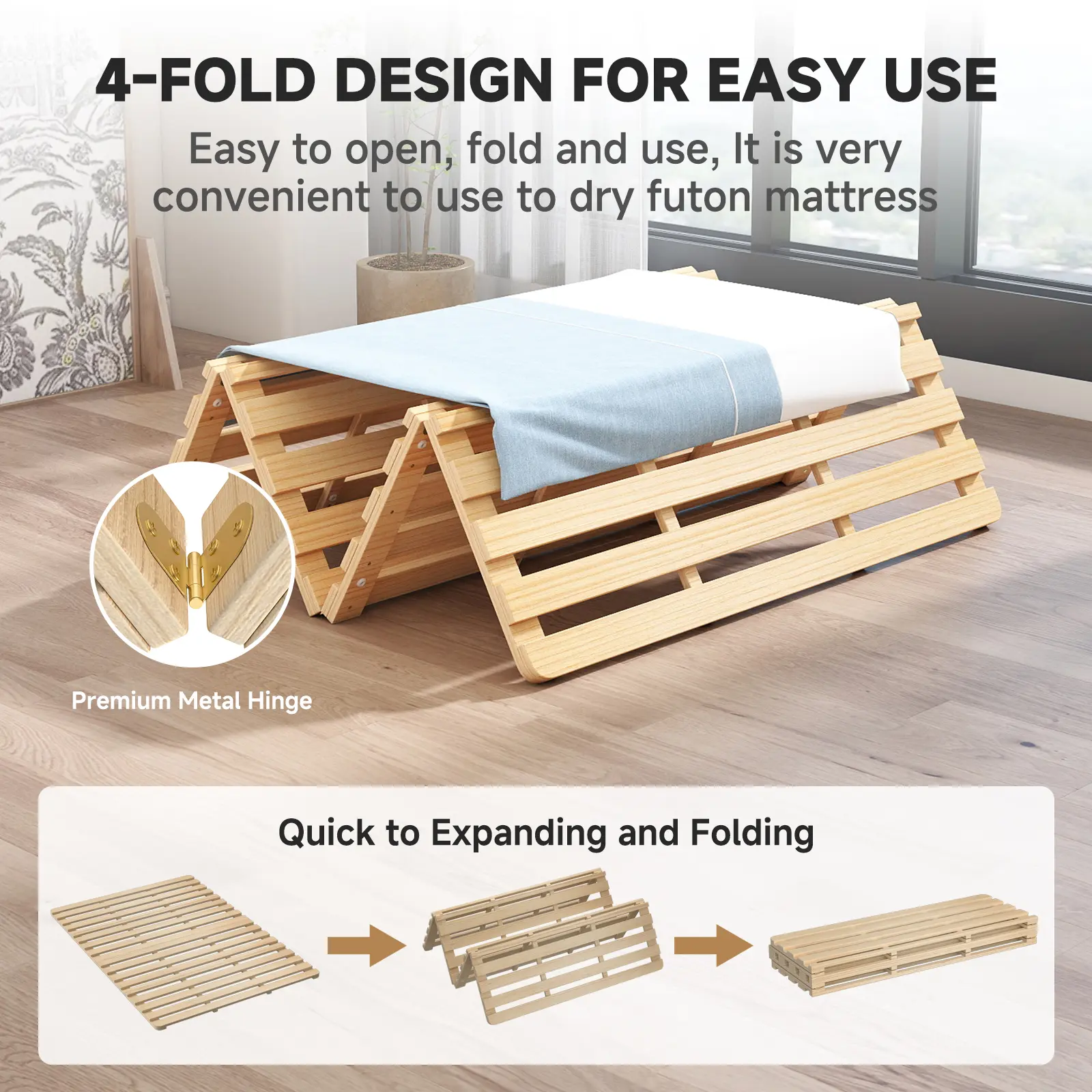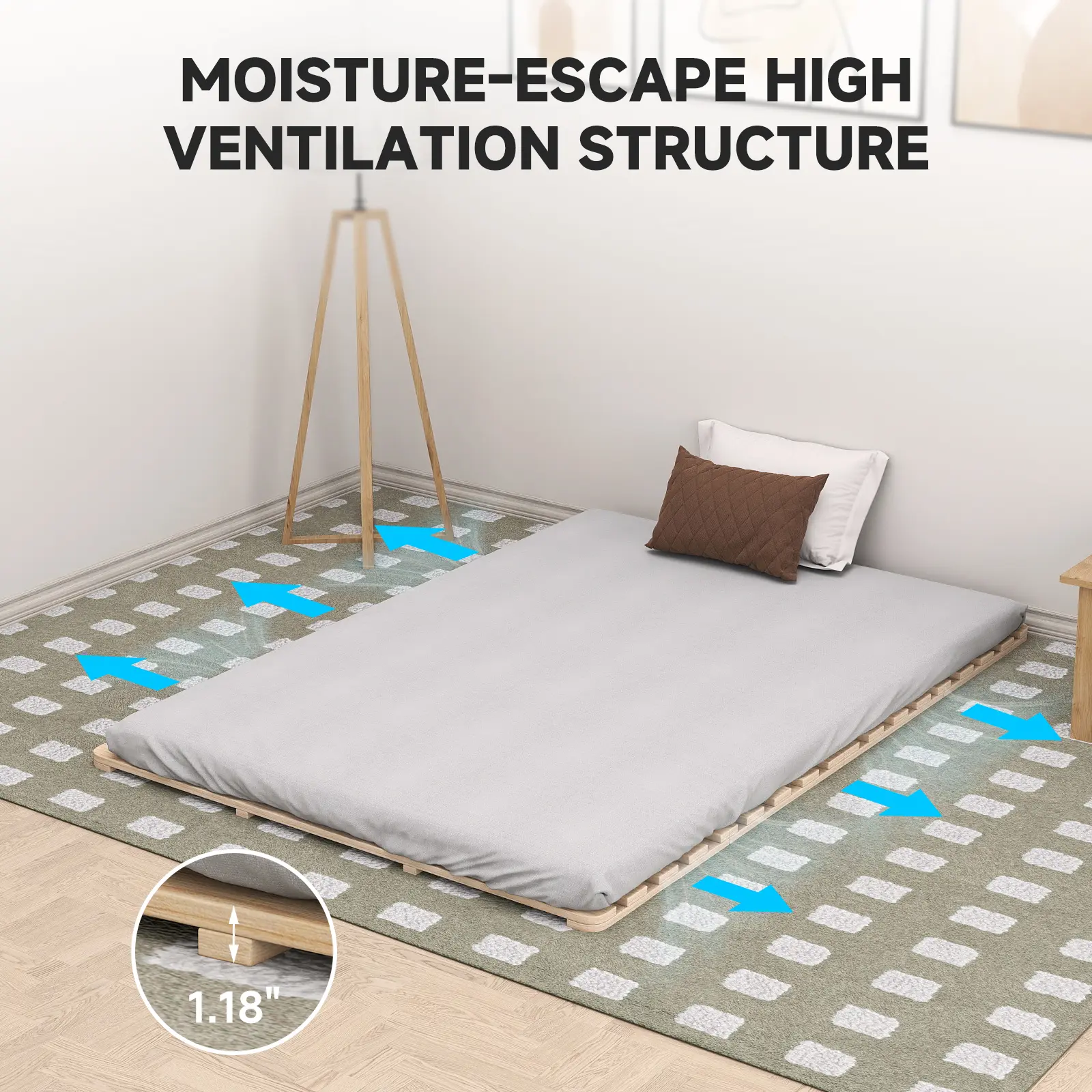 Rubber pads on the bottom prevent sliding and eliminate noise during movement, ensuring peaceful rest. The 3cm off-floor clearance allows for excellent ventilation, protecting your mattress from moisture buildup, mold, and musty odors. Ideal for floor sleeping setups.