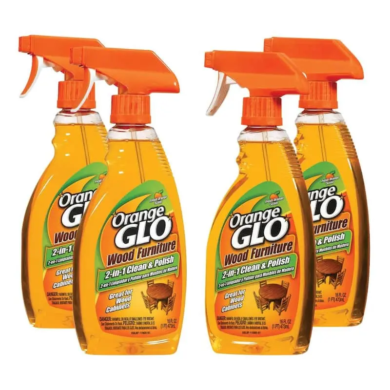 5. Orange GLO 16 oz. Wood Furniture 2-in-1 Clean Polish Spray (4-Pack), Wood Furniture Polish, Orange Oil Cleaner, 2-in-1 Furniture Care, Multi-Surface Polish, Removes Gum and Stickers, Fresh Orange Scent, Valencia Orange Oil.