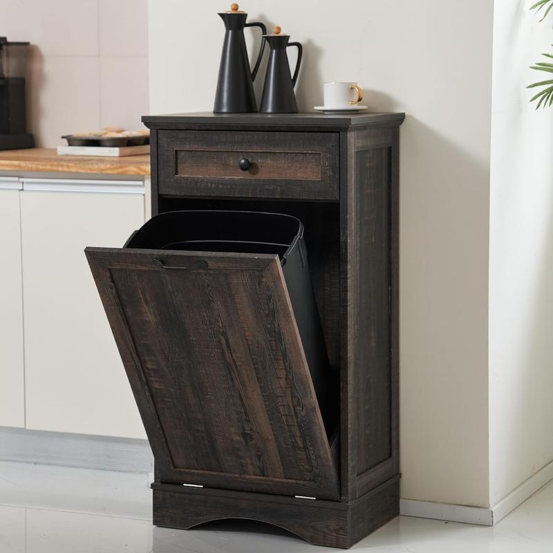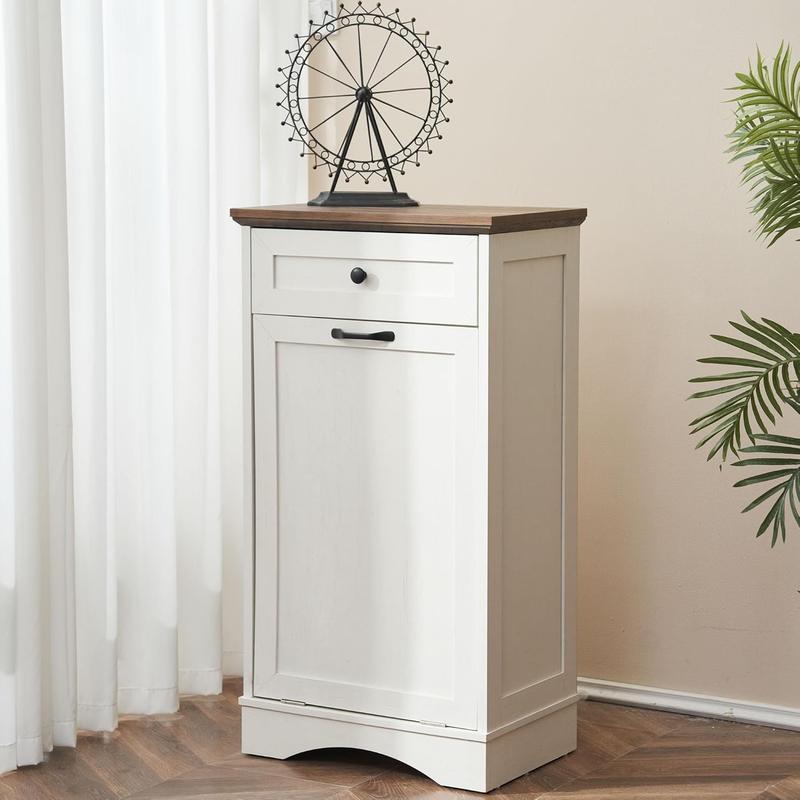 ·Modern Trash Cabinet: Tilt out trash cabinet is simple and practical. It can be easily incorporated into a variety of decorating styles. It will be perfect for dressing up your kitchen, home, apartment, dorm room, etc. It also can be used as a kitchen island or suitable to store dog food, cat food, etc., and the top can be used to place decorations, daily supplies and so on