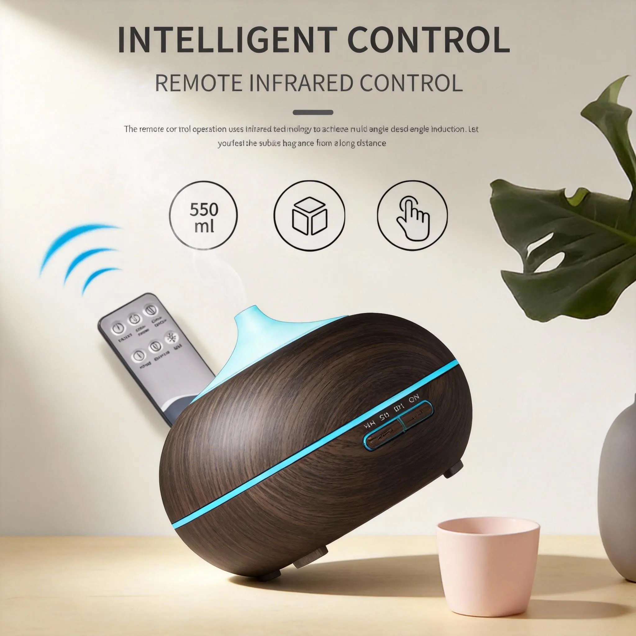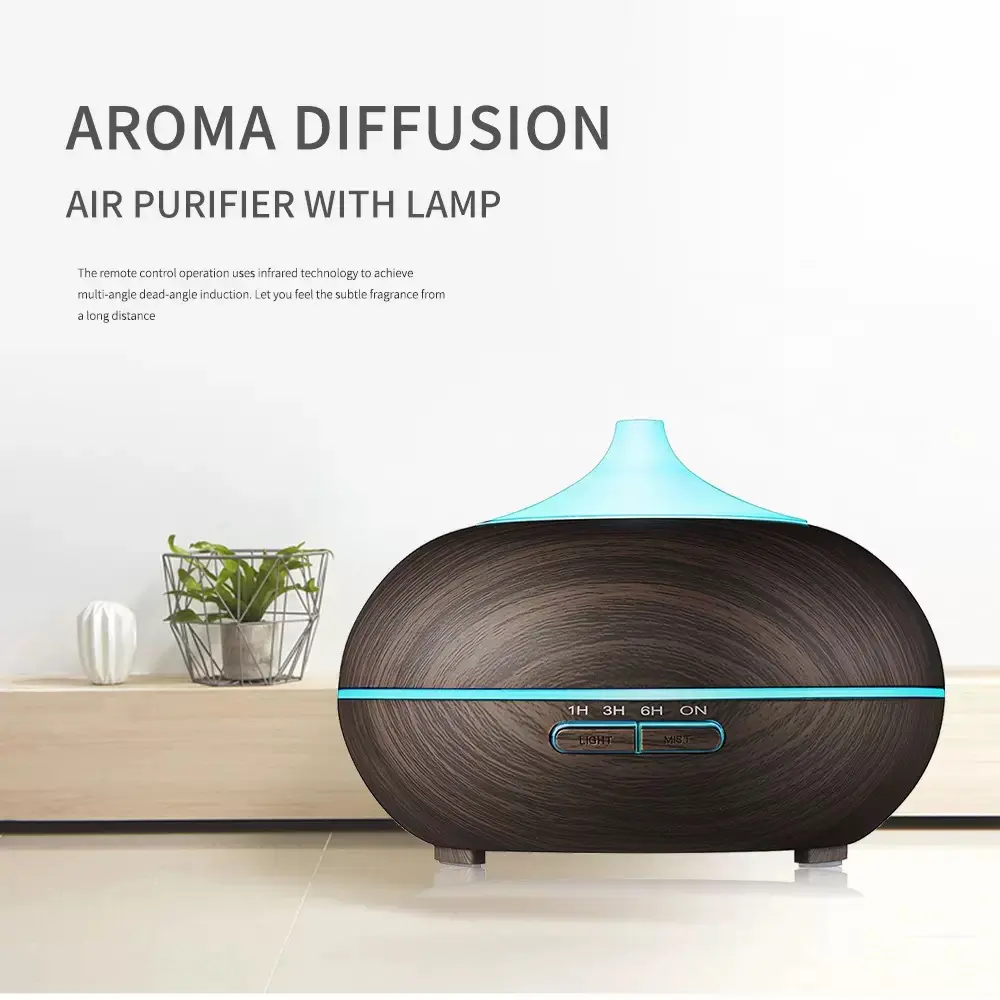550ml Wood Grain Aroma Diffuser & Cool Mist Humidifier - Remote Control & Timer for Home & Office