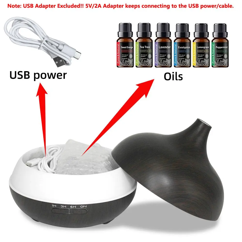 2 pieces Wood Grain Humidifier Diffuser 550ml Remote Control Quiet 12 Essential Oils