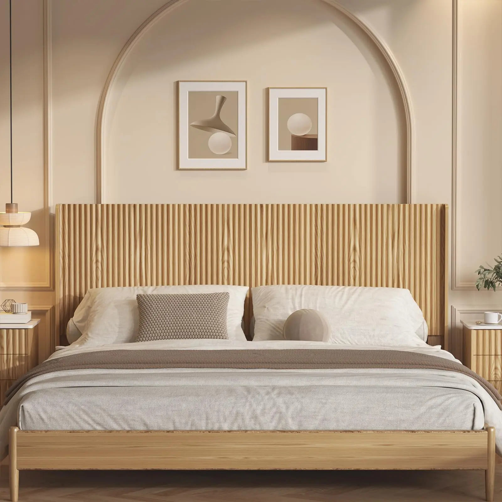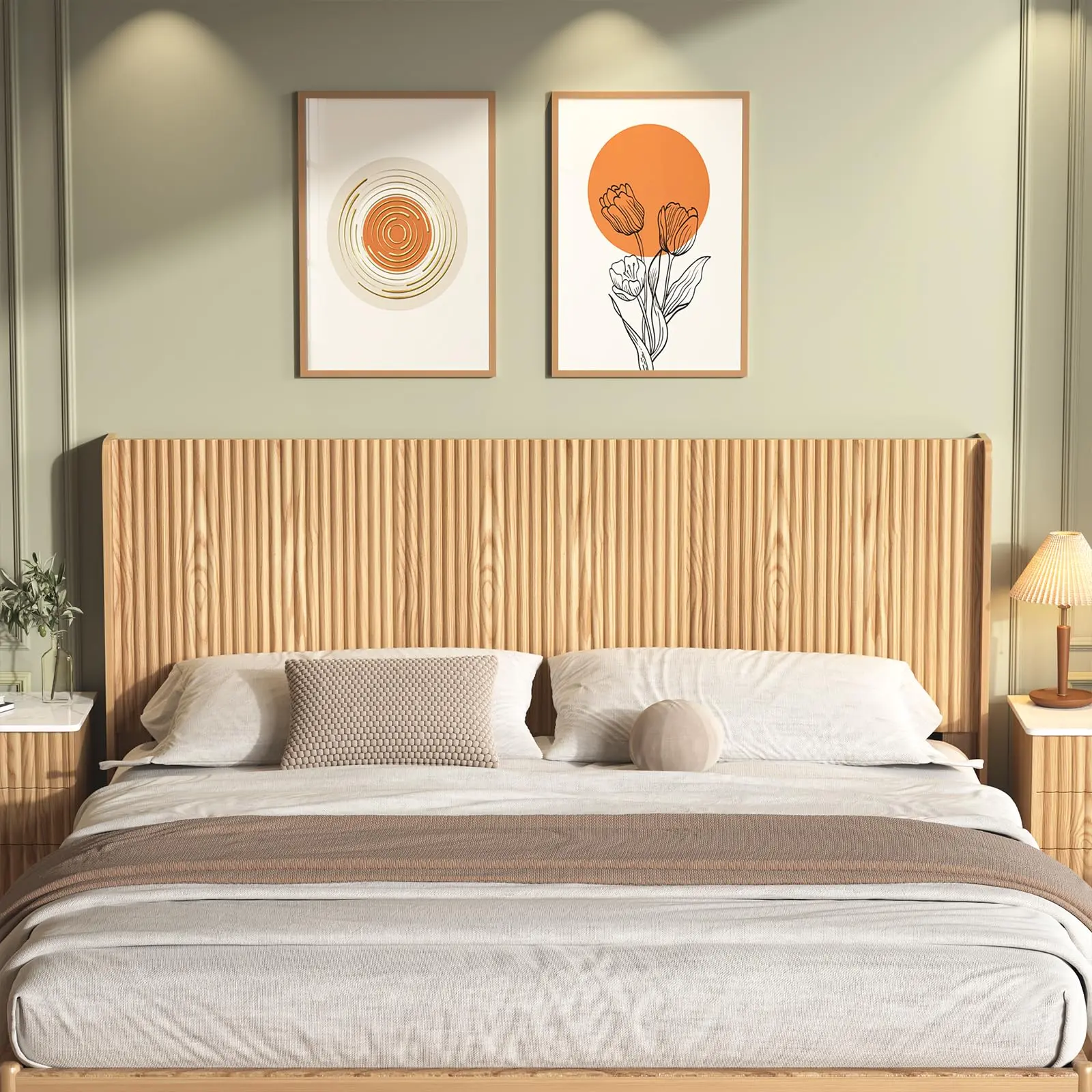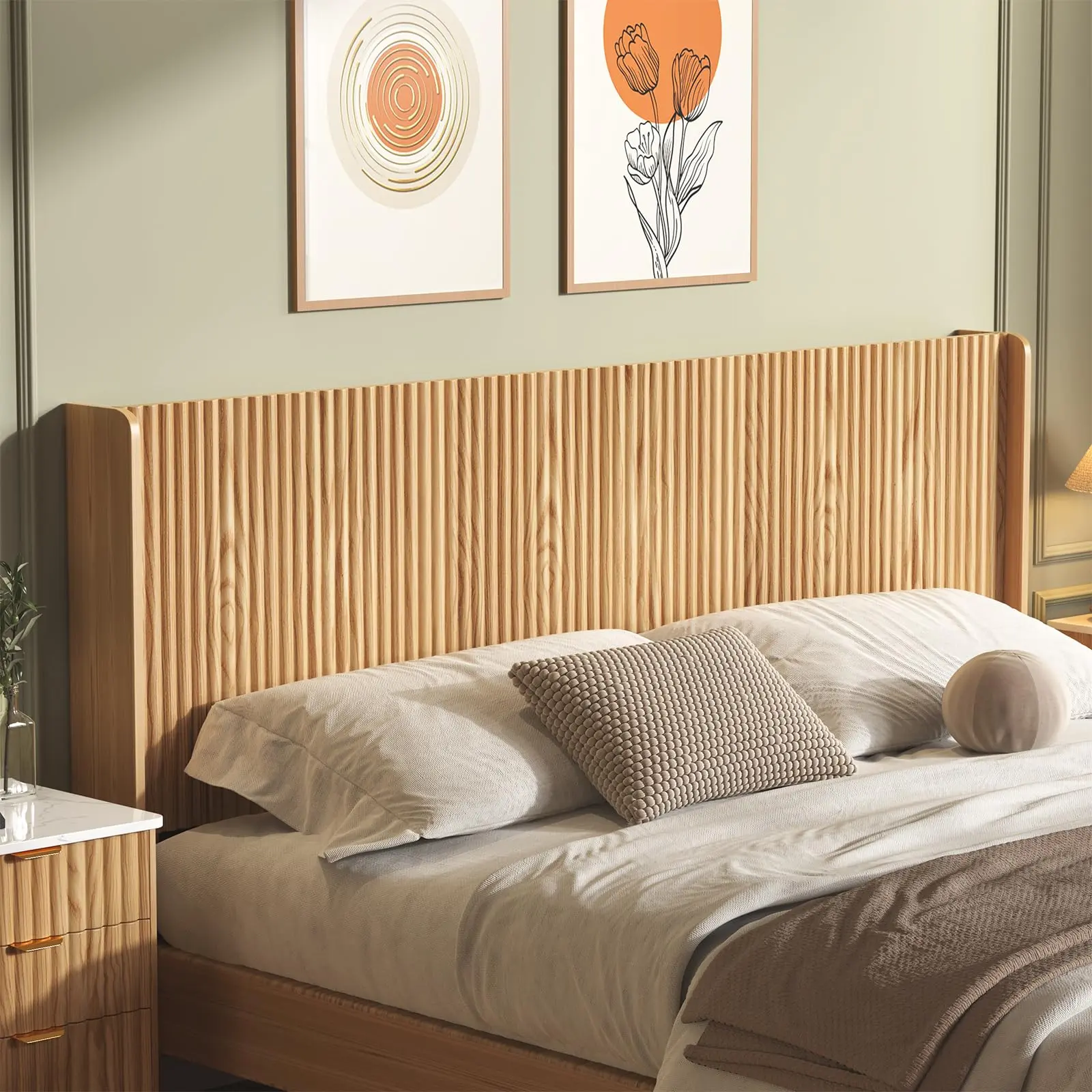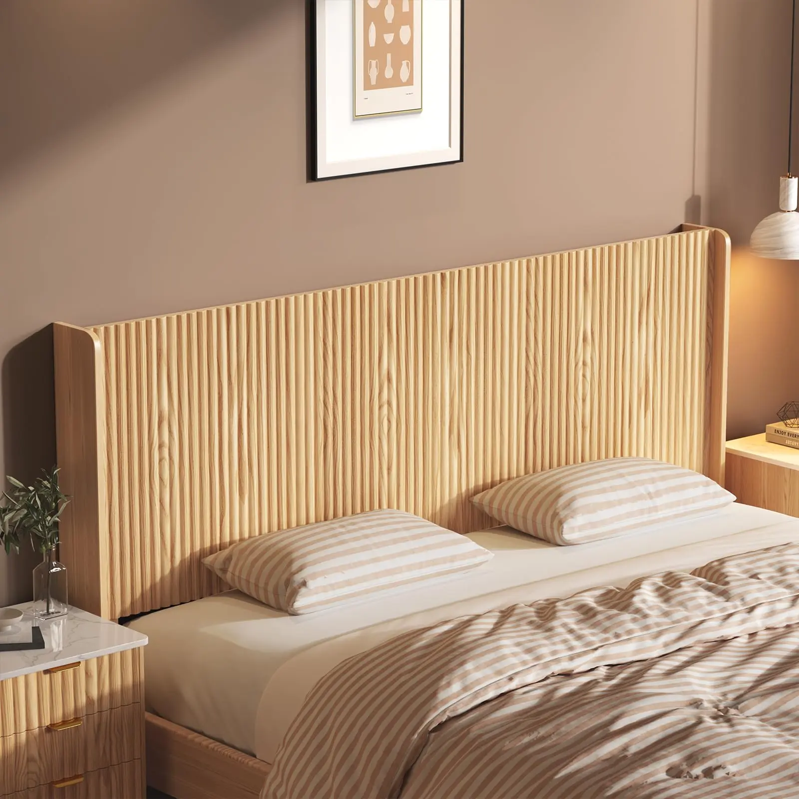 ·Lean Lines with Textured Detail: Designed with a refined wave-patterned panel, this headboard adds subtle texture and depth without being overpowering. Its sleek silhouette works effortlessly with modern, minimal, or natural-style bedrooms.
