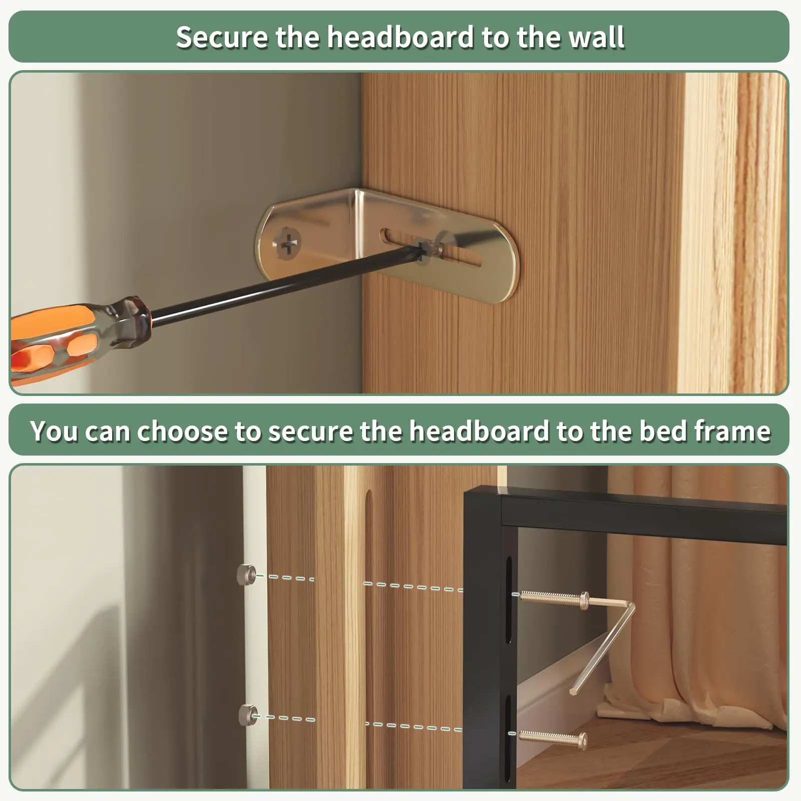 ·Customizable Mounting Heights: Adjustable mounting hardware included to fit a range of mattress heights. Choose to secure it directly to your bed frame or mount it to the wall for secure.