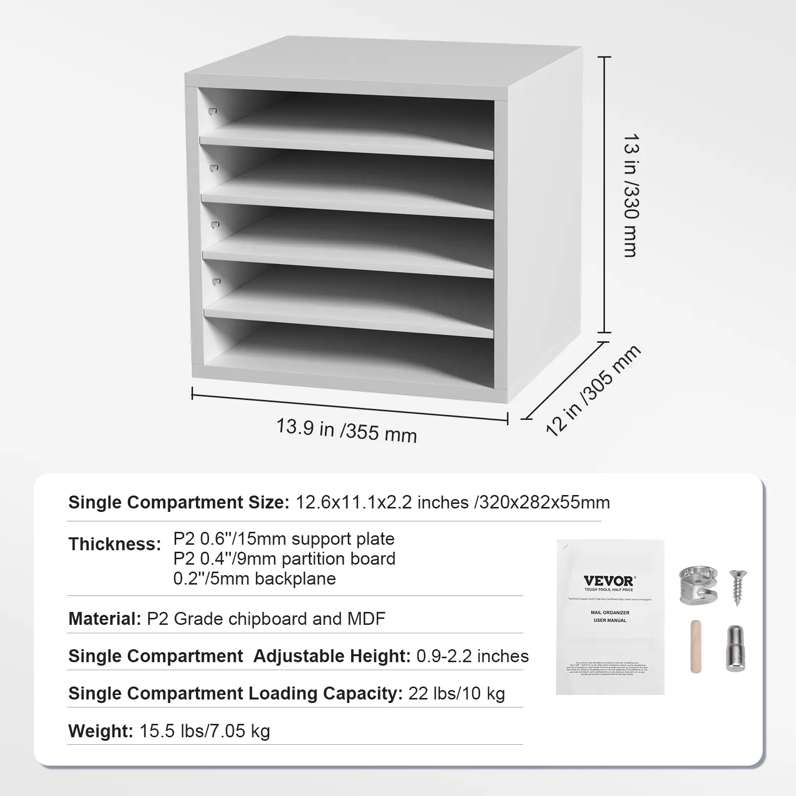 • Maximize Your Space: Say goodbye to cluttered desktops with VEVOR 13.9''x12''x13'' wood literature organizer. It has 5 compartments in total. You'll have ample space to store and organize books, documents, magazines, papers, and other materials. Keep your workspace neat and tidy with ease.
